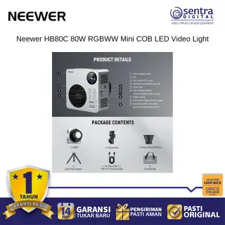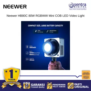 Ringkas dan berdaya tinggi, 80W HB80C RGBWW Mini LED Monolight Basic Kit portabel dari Neewer menawarkan cahaya yang luas dan berwarna-warni untuk kreator konten dan vlogger. Dengan output 10.400 lux pada jarak 3,3 kaki (9,6 meter) dengan reflektor yang disertakan, HB80C menerangi berbagai situasi di mana pun, termasuk wawancara di jalan, pernikahan, dan acara streaming langsung di luar ruangan. Dengan teknologi pencampuran RGBWW, monolight ini menggunakan pergeseran koreksi hijau/magenta untuk menghasilkan cahaya berwarna akurat. Mudah dibawa dan dipegang dengan pegangan yang disertakan, HB80C dapat ditenagai dengan kabel USB-C yang disertakan atau baterai V-mount yang tersedia terpisah. Atau, gunakan Pengisi Daya USB Type-C Xcellon Mighty Mini 165 65W GaN yang tersedia terpisah dengan kabel USB-C untuk mengisi daya lampu. Kemampuan pengaturan suhu warna 2500-7500K, tujuh mode pencahayaan, dan 18 efek pencahayaan khusus menawarkan pilihan pencahayaan unik hingga 70 menit. Kontrol onboard, nirkabel, dan aplikasinya memungkinkan kendali jarak jauh atas lampu. Untuk kontrol cahaya yang lebih baik, pasang pengubah cahaya menggunakan dudukan Bowens lampu.