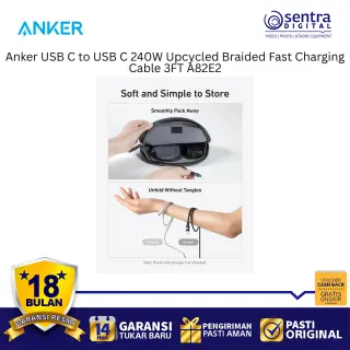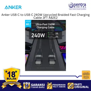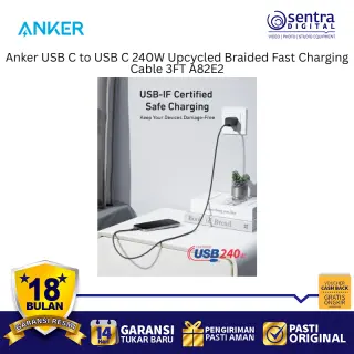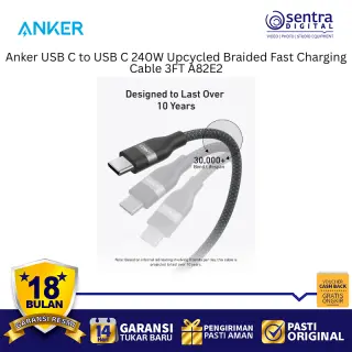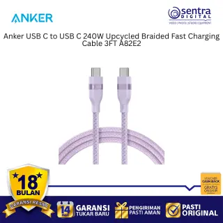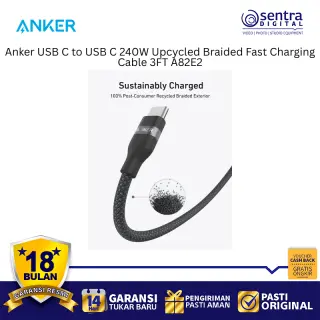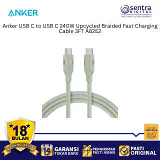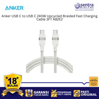 Kabel Anker dengan nomor model A82E2 ini adalah kabel charger dan data USB-C ke USB-C sepanjang tiga kaki (sekitar 0.9 meter) yang menawarkan kemampuan pengisian daya ultra cepat hingga 240 Watt. Kabel ini merupakan bagian dari inisiatif keberlanjutan Anker karena lapisan luar atau braided (kepang)-nya terbuat dari bahan daur ulang (upcycled), secara spesifik menggunakan nylon daur ulang pascakonsumen (PCR braided), yang menjadikannya ramah lingkungan. Selain cepat dan berkelanjutan, kabel ini juga terkenal sangat tahan lama—dirancang untuk bertahan lebih dari 30.000 tekukan—namun tetap memiliki tekstur yang lembut sehingga mudah digulung dan disimpan tanpa kusut. Kabel ini bersertifikat USB-IF 240 W an mendukung kecepatan transfer data hingga 480Mbps, kompatibel secara luas dengan berbagai perangkat USB-C termasuk laptop seperti MacBook Pro, tablet, dan smartphone yang mendukung protokol pengisian daya cepat. Setiap pembelian juga disertai dengan pengikat kabel silikon untuk kerapian ekstra.