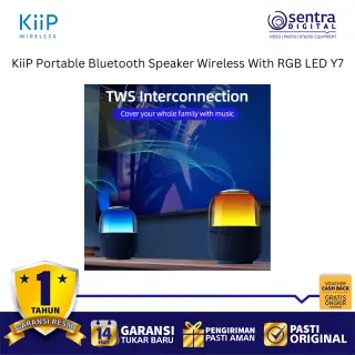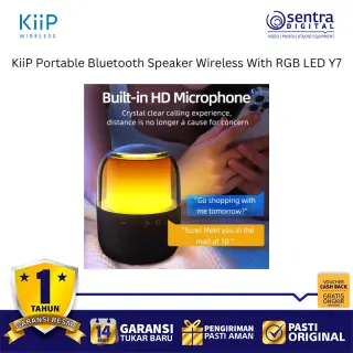 KiiP Portable Bluetooth Speaker Wireless With RGB LED Y7 adalah speaker portabel nirkabel yang menawarkan suara berkualitas HiFi dengan koneksi Bluetooth 5.3 yang stabil dan minim delay. Keunggulan utamanya terletak pada lampu RGB LED yang dinamis dan dapat mengikuti irama musik, menambah pengalaman visual saat mendengarkan. Speaker ini dilengkapi dengan mikrofon HD built-in untuk panggilan telepon yang jernih dan mendukung fitur Stereo (TWS), memungkinkan Anda menghubungkan dua unit Y7 secara bersamaan untuk output suara stereo yang lebih luas. Dengan baterai 2000 mAh (atau 1500 mAh tergantung versi), speaker ini mampu bertahan dalam mode standby hingga sekitar 15 jam. Pengisian daya menggunakan Port Type-C dan juga mendukung penggunaan Micro SD sebagai sumber musik, menjadikannya fleksibel untuk berbagai kebutuhan.