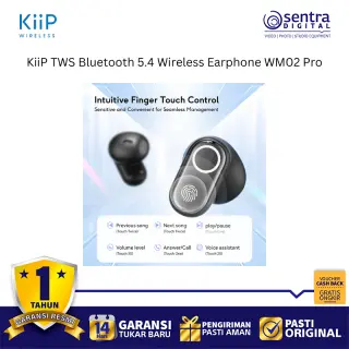 KiiP TWS Bluetooth 5.4 Wireless Earphone WM02 Pro Black adalah earphone nirkabel True Wireless Stereo (TWS) mini dan ringan dengan desain tangkai pendek yang ergonomis untuk kenyamanan pemakaian. Earphone ini menggunakan teknologi Bluetooth 5.4 untuk koneksi yang stabil dengan latensi rendah, menjadikannya cocok untuk mendengarkan musik maupun bermain game (Mode Gaming). Kualitas suaranya diklaim memiliki diafragma fidelitas tinggi yang menghasilkan stereo panorama dan kinerja Hi-Fi dengan kejernihan nada tinggi, serta dilengkapi fitur HD Voice untuk panggilan telepon yang jernih. Kotak pengisi daya (charging case) memiliki Smart LED Display yang dapat menunjukkan status baterai secara langsung. Pengendalian fungsi seperti memutar/menjeda musik, mengganti lagu, atau mengatur volume dapat dilakukan melalui kontrol sentuh sensitif pada earbud. Pengisian daya untuk kasusnya menggunakan porta USB Type-C.