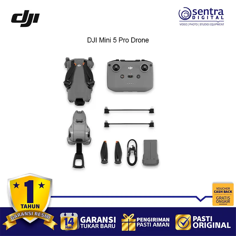 DJI Mini 5 Pro memiliki fitur kamera CMOS 1 inci, pendeteksi rintangan segala arah (omnidirectional) untuk Nightscape, gimbal dengan rotasi fleksibel 225°, dan ActiveTrack 360° yang ditingkatkan, semuanya dikemas dalam bodi ringan khasnya. Dengan performa setara drone andalan, drone ini mengabadikan momen-momen indah dalam hidup dan menyimpan kenangan berharga Anda dengan detail yang memukau.