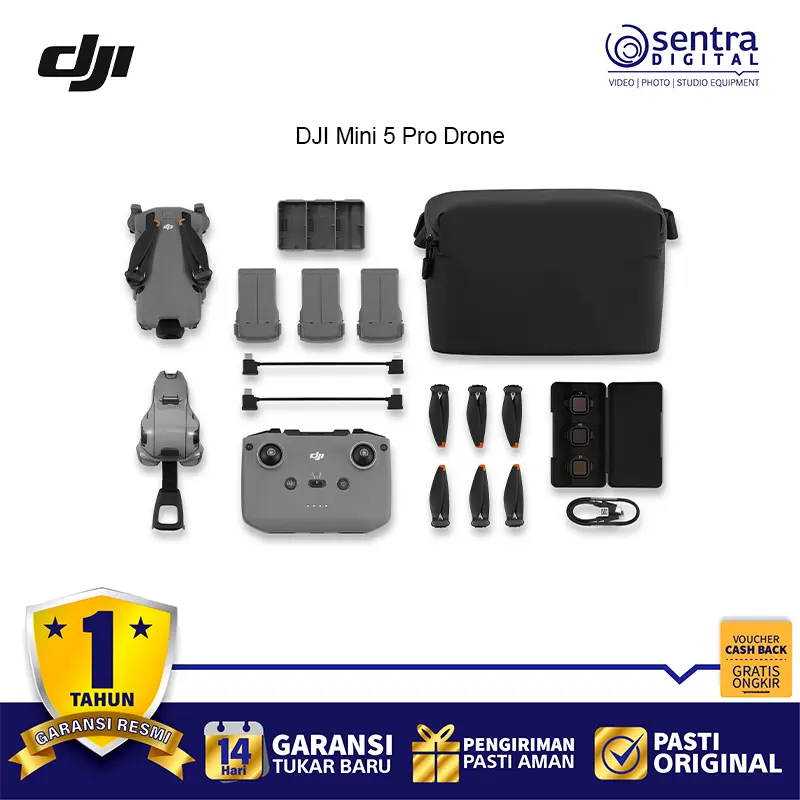 DJI Mini 5 Pro memiliki fitur kamera CMOS 1 inci, pendeteksi rintangan segala arah (omnidirectional) untuk Nightscape, gimbal dengan rotasi fleksibel 225°, dan ActiveTrack 360° yang ditingkatkan, semuanya dikemas dalam bodi ringan khasnya. Dengan performa setara drone andalan, drone ini mengabadikan momen-momen indah dalam hidup dan menyimpan kenangan berharga Anda dengan detail yang memukau.