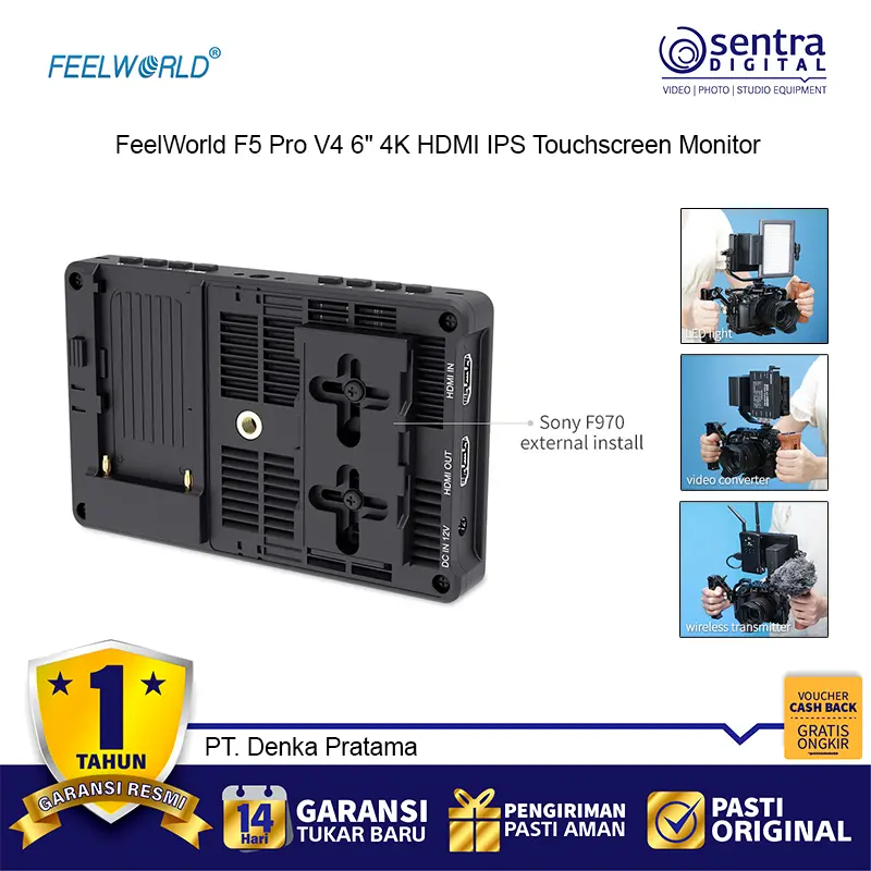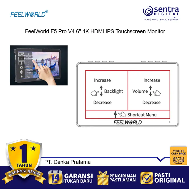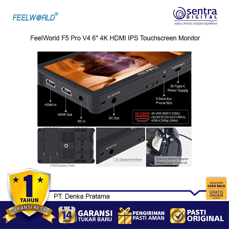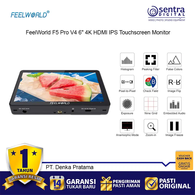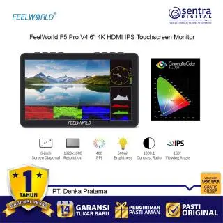 Tambahkan monitor beresolusi tinggi ke kamera 4K Anda dengan Monitor Layar Sentuh IPS HDMI 4K F5 Pro V4 6";;; dari FeelWorld. Monitor F5 Pro V4 memiliki resolusi 1920 x 1080 dan mendukung video hingga UHD/DCI 4K. Monitor ini juga mendukung 3D LUT dengan profil LUT bawaan dan LUT 3D khusus.