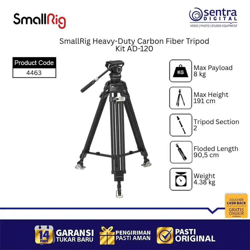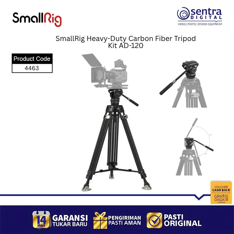 SmallRig AD-120 4463 adalah tripod profesional berbahan carbon fiber yang ringan namun sangat kokoh, dirancang untuk kebutuhan sinematografi, fotografi outdoor, dan produksi konten berat. Dengan kapasitas beban tinggi dan stabilitas luar biasa, tripod ini ideal untuk kamera DSLR, mirrorless, dan rig sinematik. Dilengkapi dengan sistem penguncian cepat, kaki teleskopik, dan kompatibilitas universal.