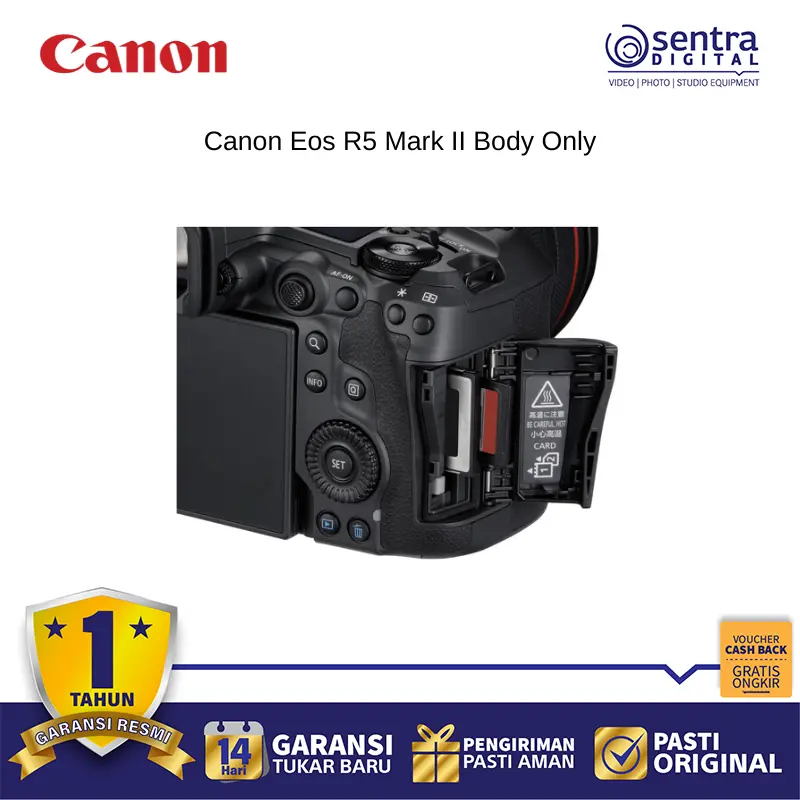 Dengan tenaga yang memungkinkan sensor mirrorless beresolusi tertinggi Canon merekam video 30 fps dan raw 8K60p, Kamera Mirrorless EOS R5 Mark II adalah solusi bagi para profesional multimedia untuk fleksibilitas, kualitas gambar, dan kecerdasan. Desain sensor 45MP yang sepenuhnya baru dan bercahaya belakang dipadukan dengan prosesor terbaru untuk menghadirkan peningkatan di hampir setiap kategori, menciptakan kamera serba guna yang dapat menyelesaikan pekerjaan.