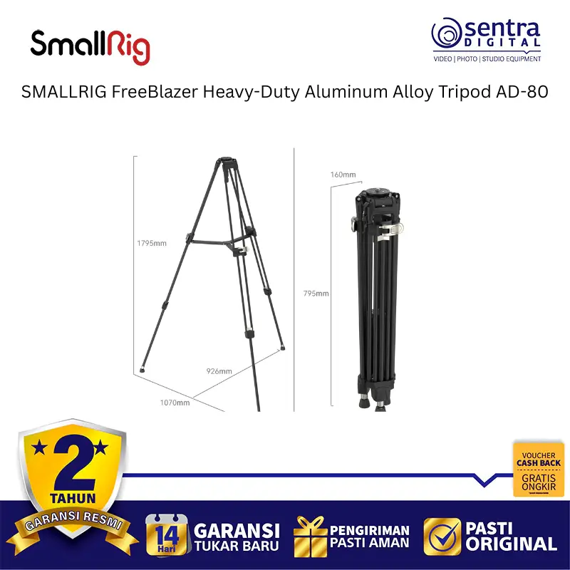 SMALLRIG 4164 Fluid Head Video Tripod FreeBlazer AD-80 Aluminum Alloy Professional