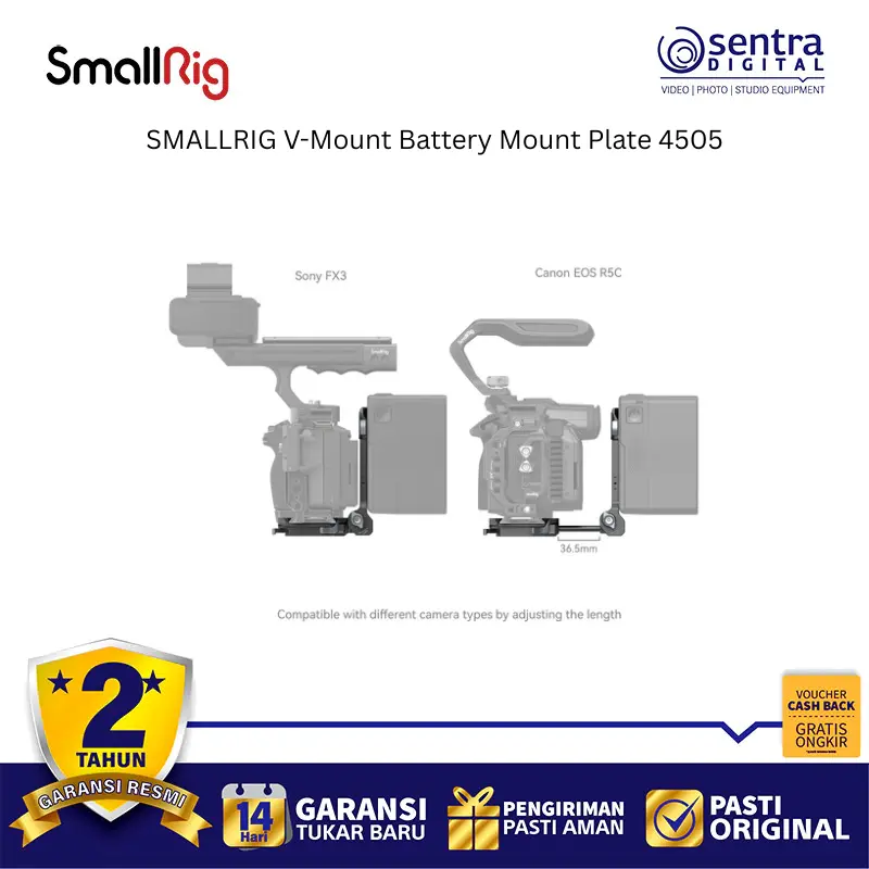 adalah solusi pemasangan serbaguna dan lengkap untuk baterai V-mount yang menawarkan pemasangan tanpa alat dan sistem pelepas cepat yang praktis. Pelat ini memiliki beberapa ulir pemasangan 1/4"-20, klem bergaya Arca, dan lubang bawaan 1/4"-20 dan 3/8"-16 di bagian bawah untuk memudahkan pemasangan pelat pelepas cepat lainnya. Terbuat dari aluminium dan baja tahan karat untuk daya tahan dan kekokohan ekstra, unit ini dapat menahan beban hingga 11 lb.