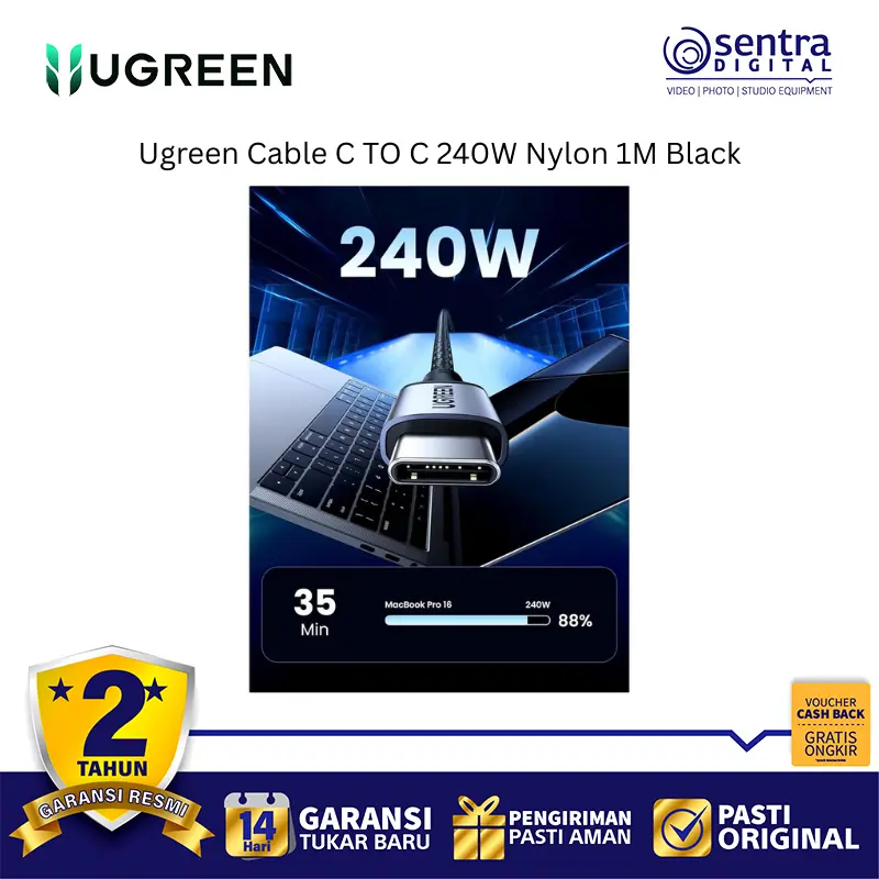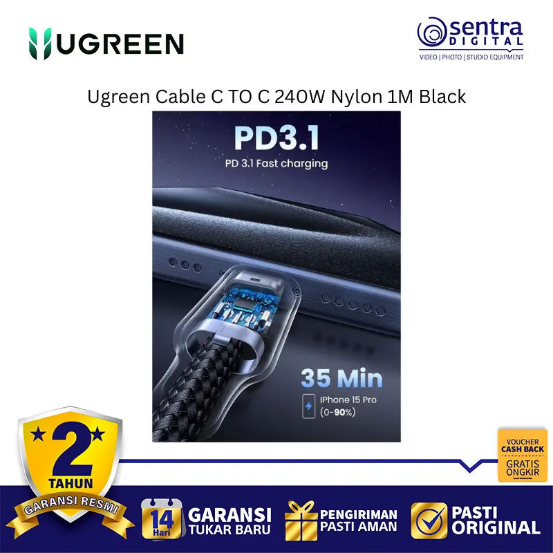 Kabel Charger UGREEN Type C to Type C ini dirancang untuk pengisian cepat dengan daya hingga 240W, ideal untuk perangkat Iphone Anda.