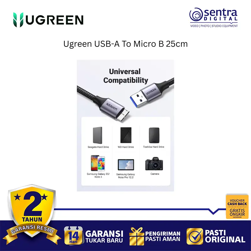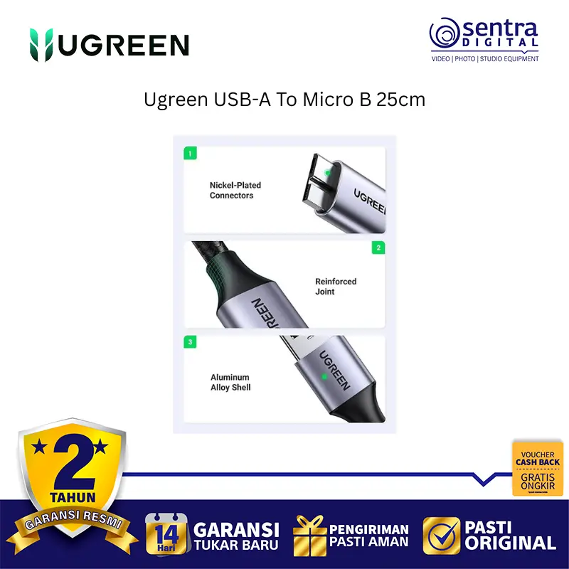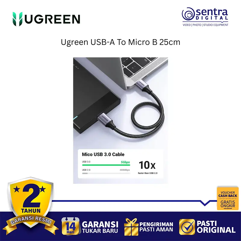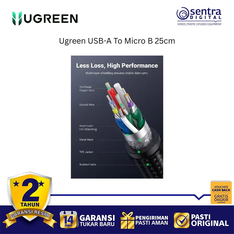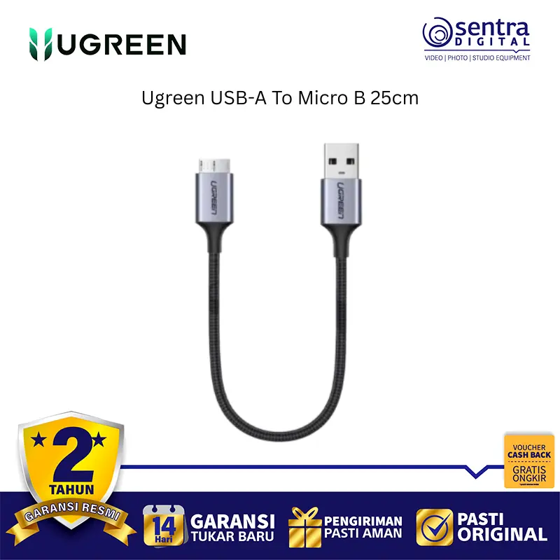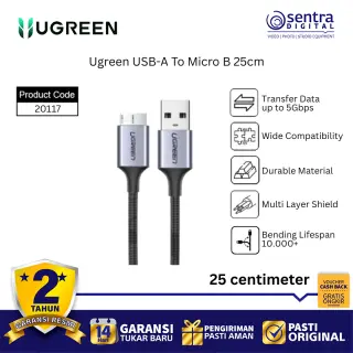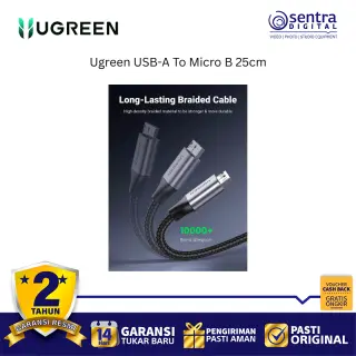 Ugreen Kabel USB-A ke Micro B 25cm (Model 20117) adalah kabel penghubung pendek dan ringkas yang dirancang untuk pengisian daya (charging) dan transfer data.
