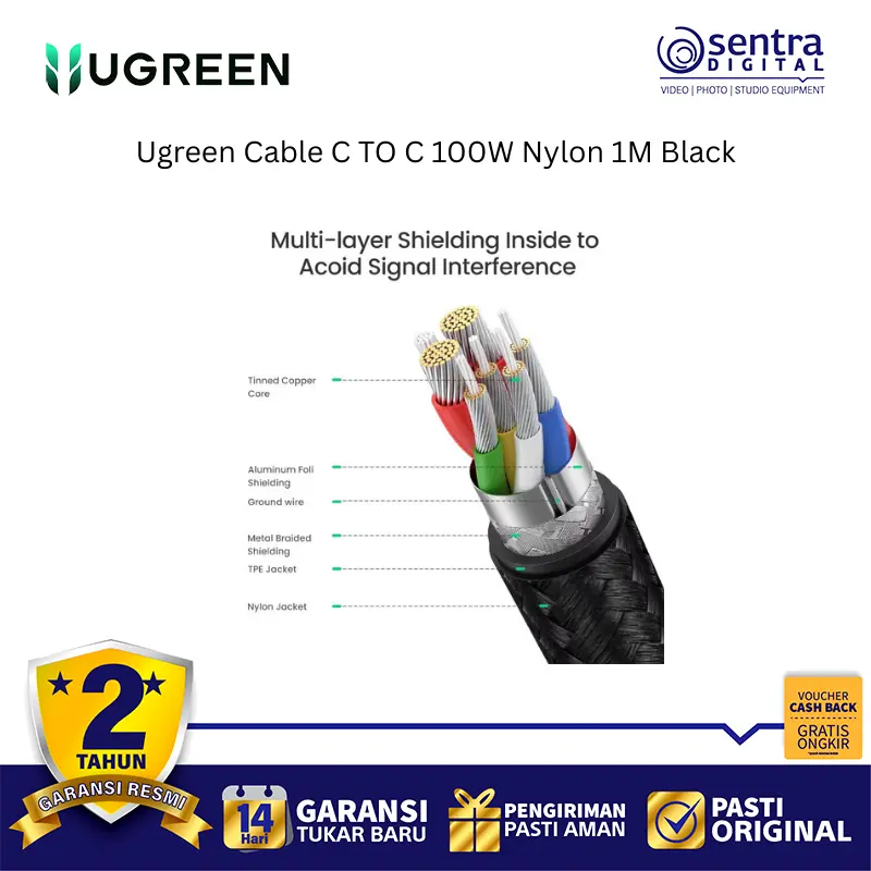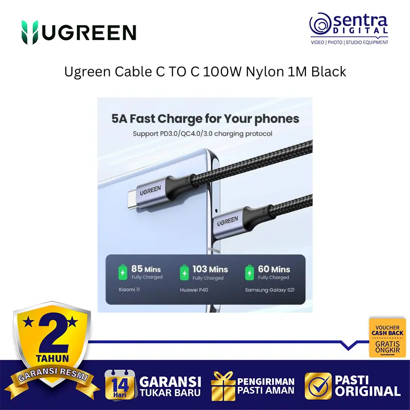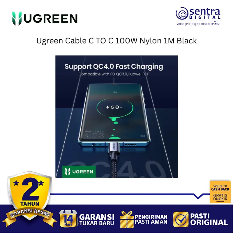 Kabel Ugreen USB-C to USB-C 70427 adalah kabel pengisian daya cepat berkinerja tinggi yang dirancang untuk mendukung Power Delivery (PD) hingga 100W. Kabel ini memiliki konstruksi yang sangat tahan lama berkat lapisan luar nilon anyam (nylon braided), yang membuatnya lebih kuat dan tidak mudah putus atau kusut dibandingkan kabel standar. Dengan panjang 1 meter, kabel ini ideal untuk mengisi daya laptop (seperti MacBook, Dell XPS), tablet, dan ponsel yang mendukung pengisian daya cepat. Selain pengisian daya 100W, kabel ini juga mendukung kecepatan transfer data hingga 480 Mbps (USB 2.0).