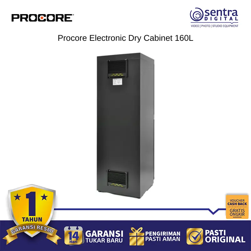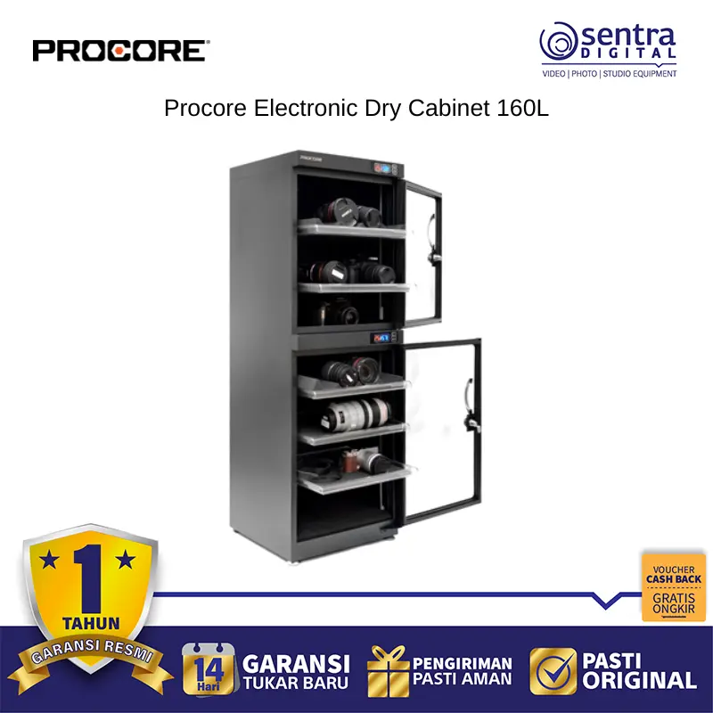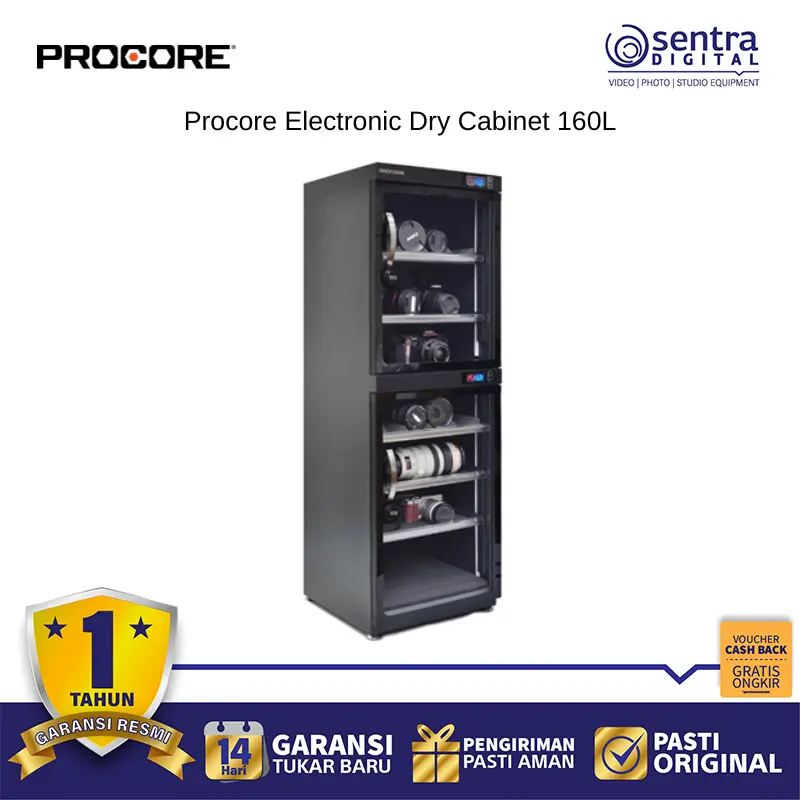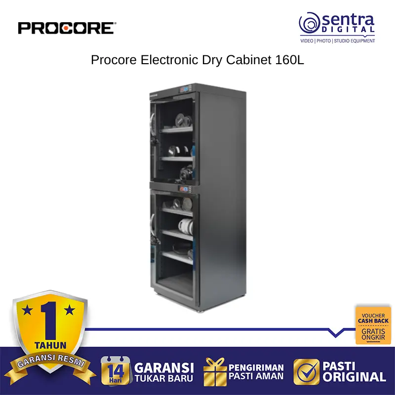 Procore Electronic Dry Cabinet 160L adalah lemari penyimpanan elektronik berkapasitas besar yang dirancang untuk menjaga peralatan fotografi, optik, atau barang sensitif kelembapan lainnya tetap aman dan bebas dari jamur, korosi, dan kerusakan akibat kelembapan tinggi. Dengan kapasitas 160 liter, kabinet ini menyediakan ruang yang luas untuk menyimpan banyak kamera, lensa, dan aksesori. Kabinet ini dilengkapi dengan sistem kontrol kelembapan elektronik otomatis (