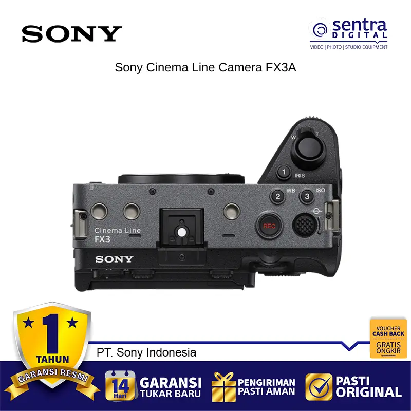 mengadopsi gaya kamera Cinema Line dan Alpha untuk menciptakan kamera sinema portabel yang optimal. FX3A memiliki semua atribut pencitraan yang Anda harapkan dari kelasnya, tetapi dengan bentuk genggam yang ringan dan ramping, profil yang ramping, serta desain "bebas sangkar", yang memungkinkan Anda untuk memasang berbagai aksesori langsung ke bodi kamera.