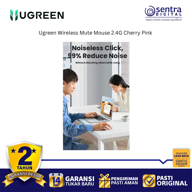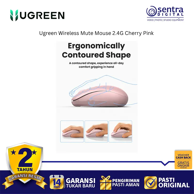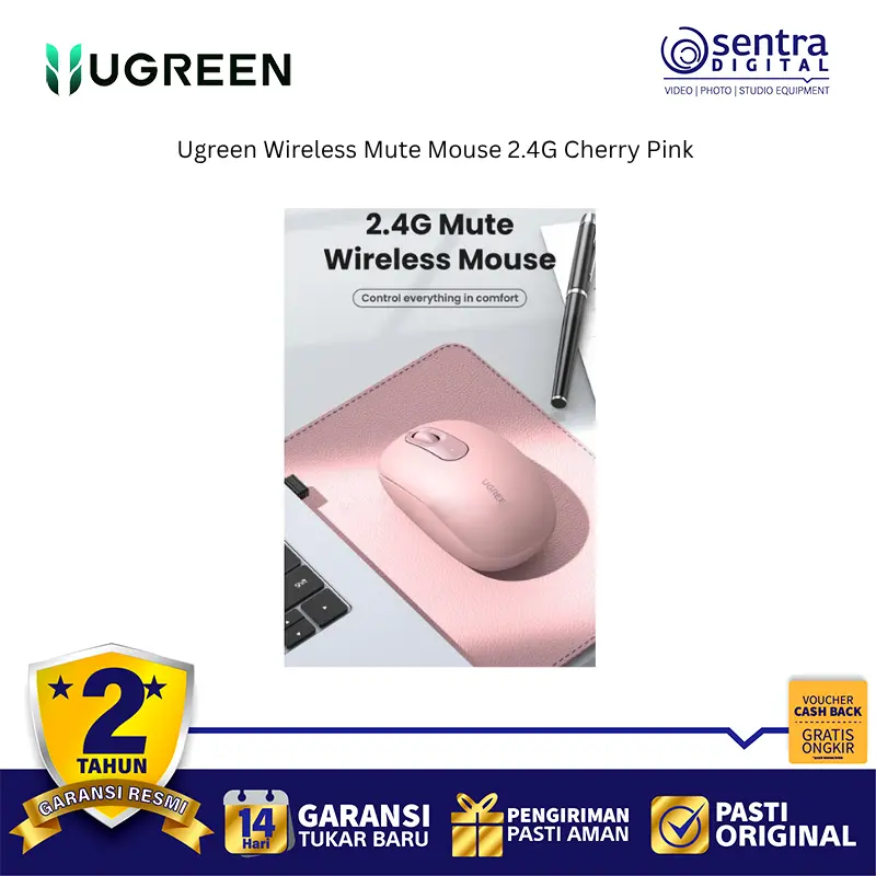 Ugreen Wireless Mute Mouse 2.4G Cherry Pink - 90686 adalah