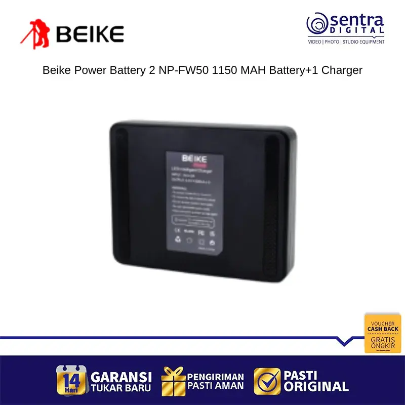 Beike Power Battery 2 NP-FW50 1150 mAh Battery + 1 Charger adalah paket daya pihak ketiga yang dirancang khusus untuk kamera mirrorless Sony yang menggunakan tipe baterai NP-FW50 (seperti seri Alpha A7/A7R/A7S generasi awal, seri A6000, A5000, dan NEX).