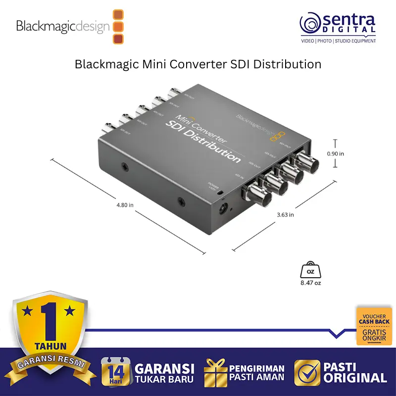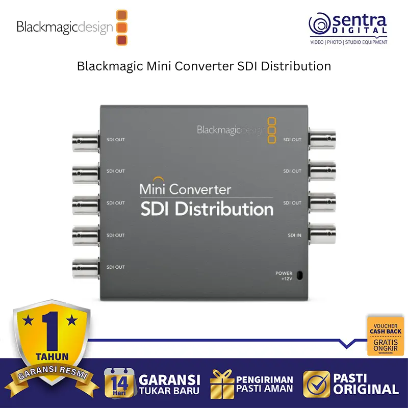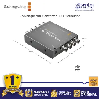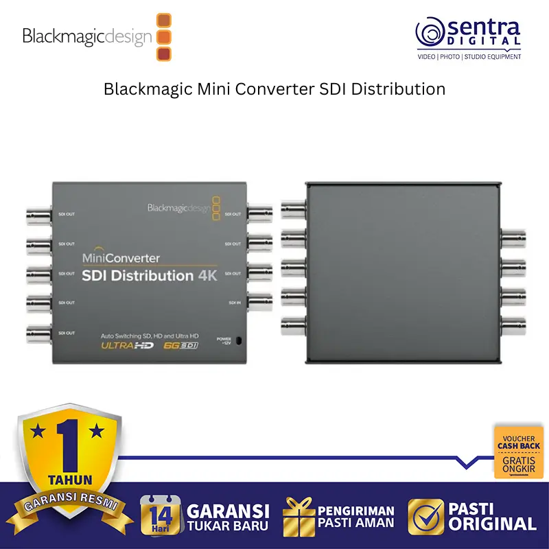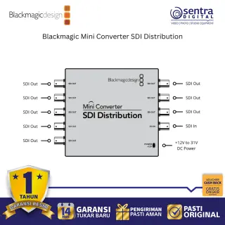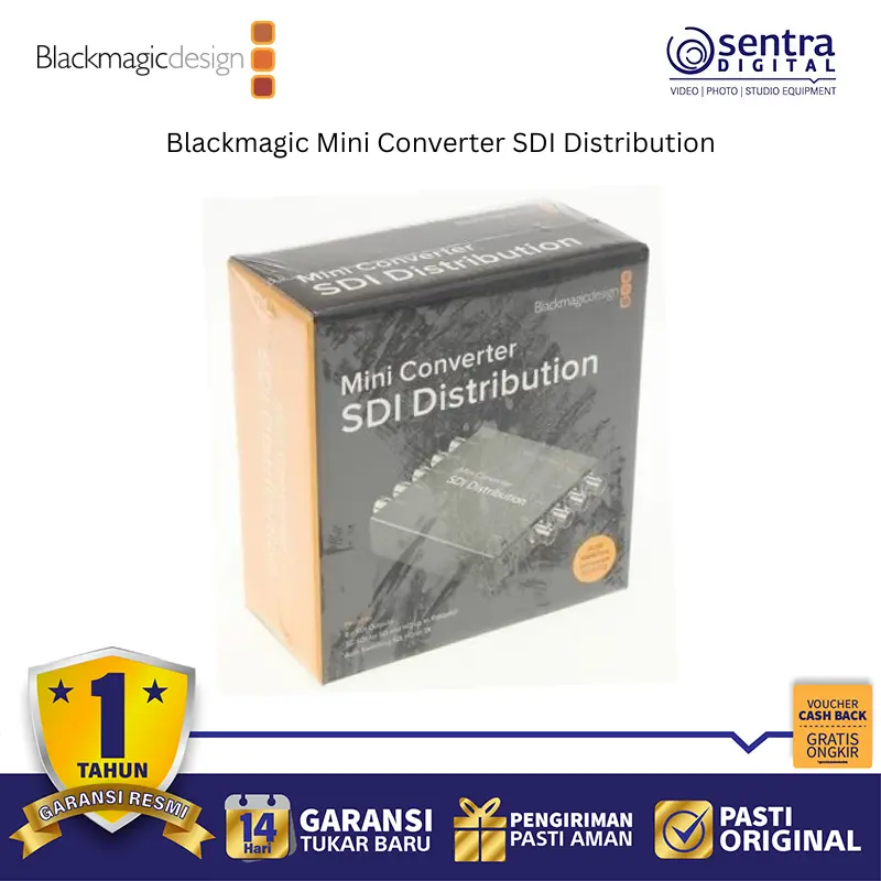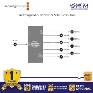 Blackmagic Design Mini Converter SDI Distribution adalah penguat distribusi 1x8 untuk sinyal SD-SDI, HD-SDI, dan 3G-SDI. Mini Converter ini secara otomatis mendeteksi jenis sinyal input, mengatur clock-nya, dan delapan output-nya secara otomatis menyesuaikan dengan input video SDI. Perangkat ini merupakan cara yang terjangkau untuk mendistribusikan sinyal SDI ke seluruh fasilitas atau truk.