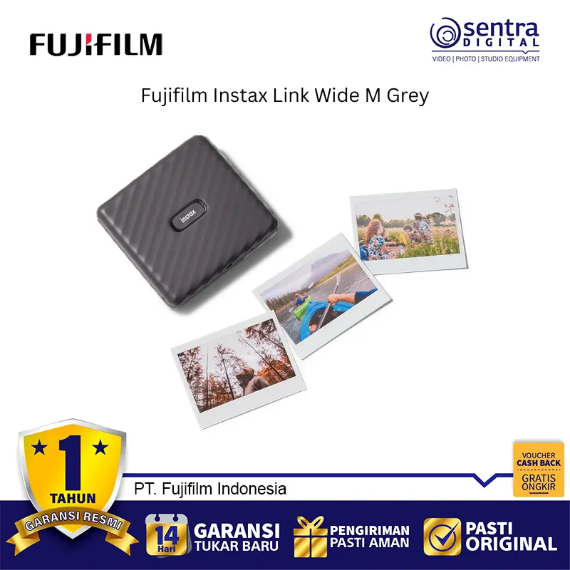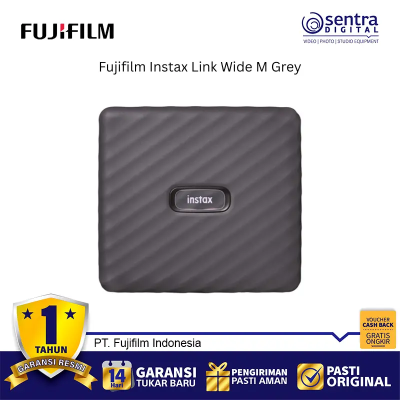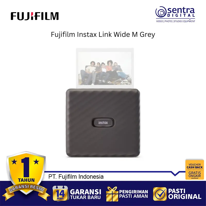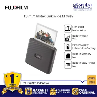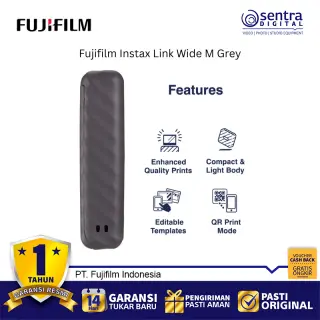 Fujifilm Instax Link Wide M Gray EX D adalah printer foto portabel yang dirancang untuk mencetak gambar dengan format lebar (Instax Wide Film, ukuran gambar 62mm x 99mm) langsung dari