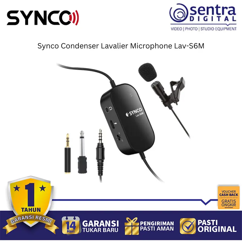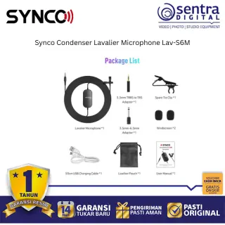 In the Box1x SYNCO Lav-S6M Lavalier Microphone1x 50cm USB Charging Cable1x 3.5mm-6.3mm Adapter1x 3.5mm TRRS to TRS Adapter1x Leather Pouch2x Windscreen2x 6mm Tie Clip1x User Manua