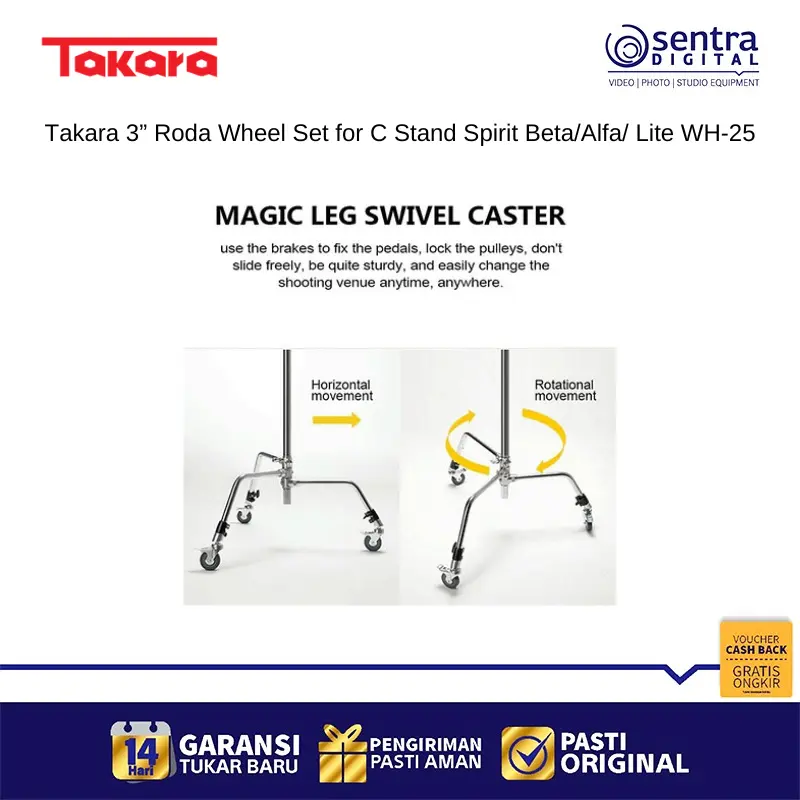 Takara WH-22 Wheel Set 3 Inch Light Stand Tripod Caster Stabilizer for Spirit 3 / 4 Studio Accessories