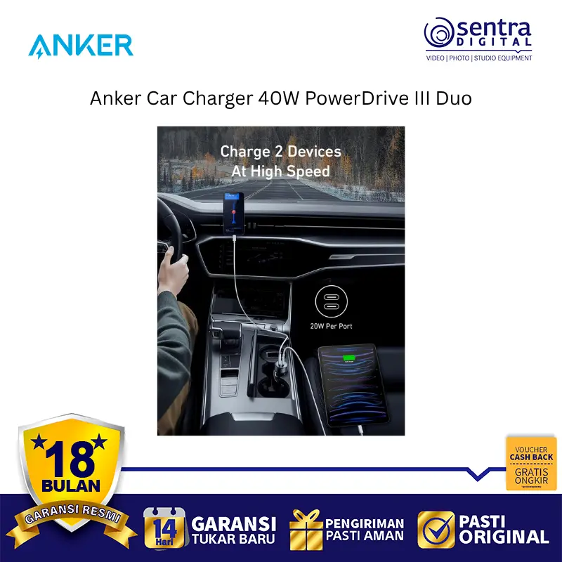 Anker Car Charger 40W PowerDrive III Duo A2724013 adalah pengisi daya mobil