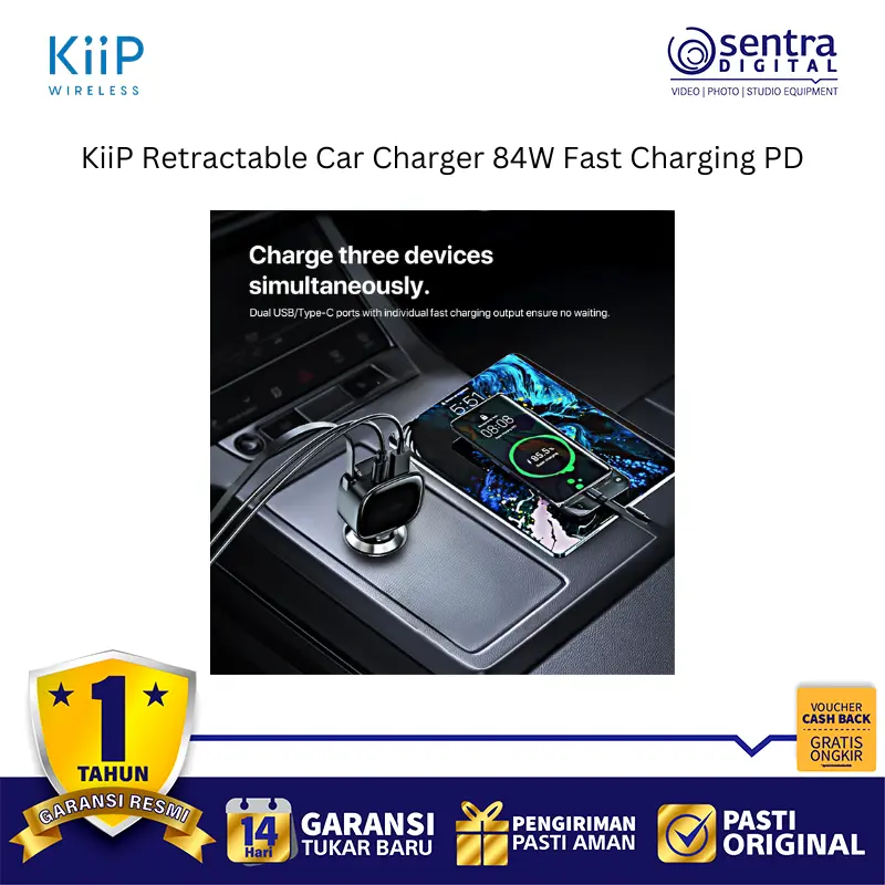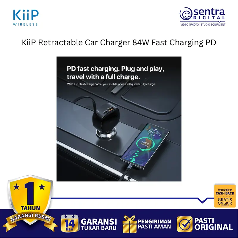 KiiP Retractable Car Charger SC17 adalah pengisi daya mobil yang menawarkan kemampuan