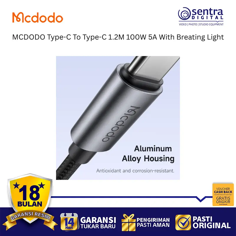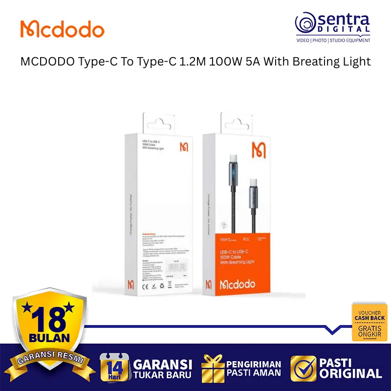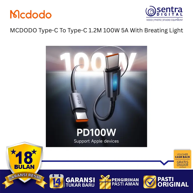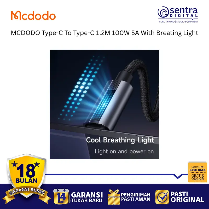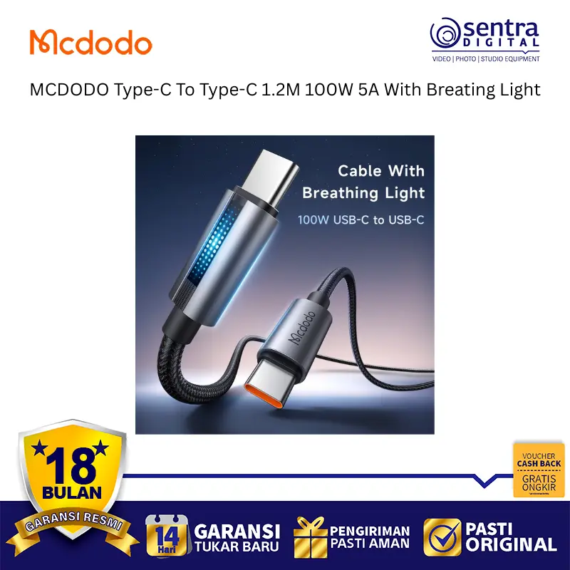 MCDODO Original CA-5740 Type-C to Type-C Cable 100W 5A Fast Charging Gaming Cable with LED Light