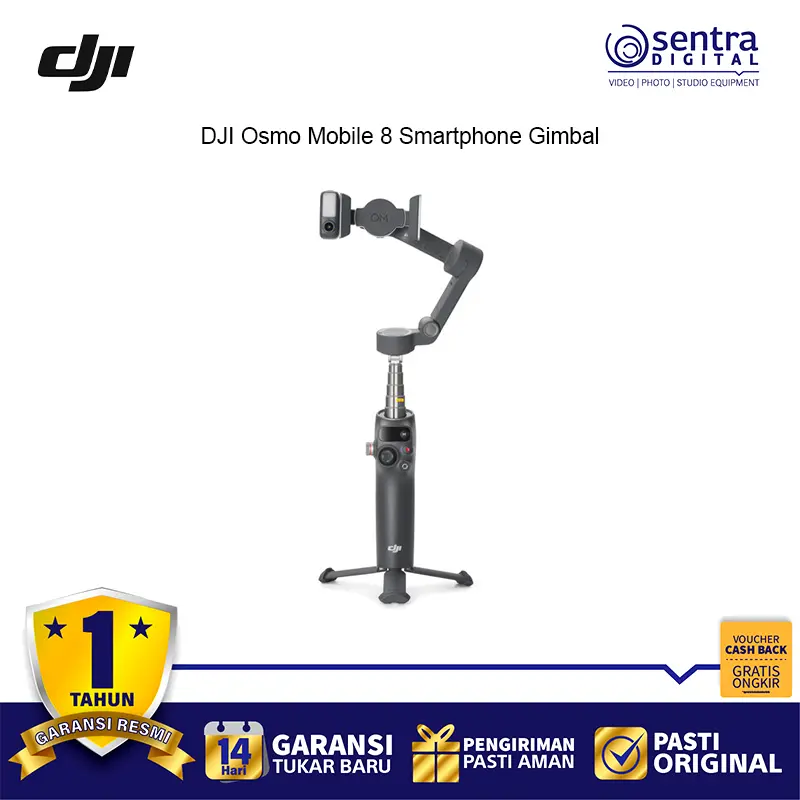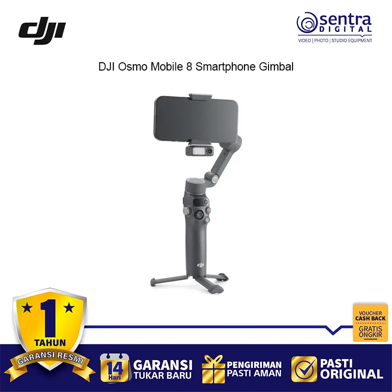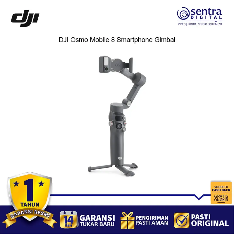 Lacak subjek secara akurat sambil menjaga kestabilan rekaman ponsel pintar dengan DJI Osmo Mobile 8 Smartphone Gimbal. Gimbal stabilizer terbaru ini menawarkan Modul Multifungsi dan teknologi ActiveTrack 7.0. Gimbal ini mencakup penjepit ponsel magnetik yang mendukung ponsel pintar hingga lebar 3,3 inci dalam antarmuka pemasangan cepat, lengan ekstensi dan tripod bawaan, serta Modul Multifungsi OM untuk teknologi pelacakan hewan peliharaan dan manusia yang lebih baik, kontrol gestur, dan lampu pengisi. Pembaruan lainnya termasuk koneksi langsung ke ponsel pintar dengan dukungan Apple DockKit, output USB-C untuk mengisi daya kamera, dan lubang pemasangan pemberat untuk menambahkan pemberat opsional.