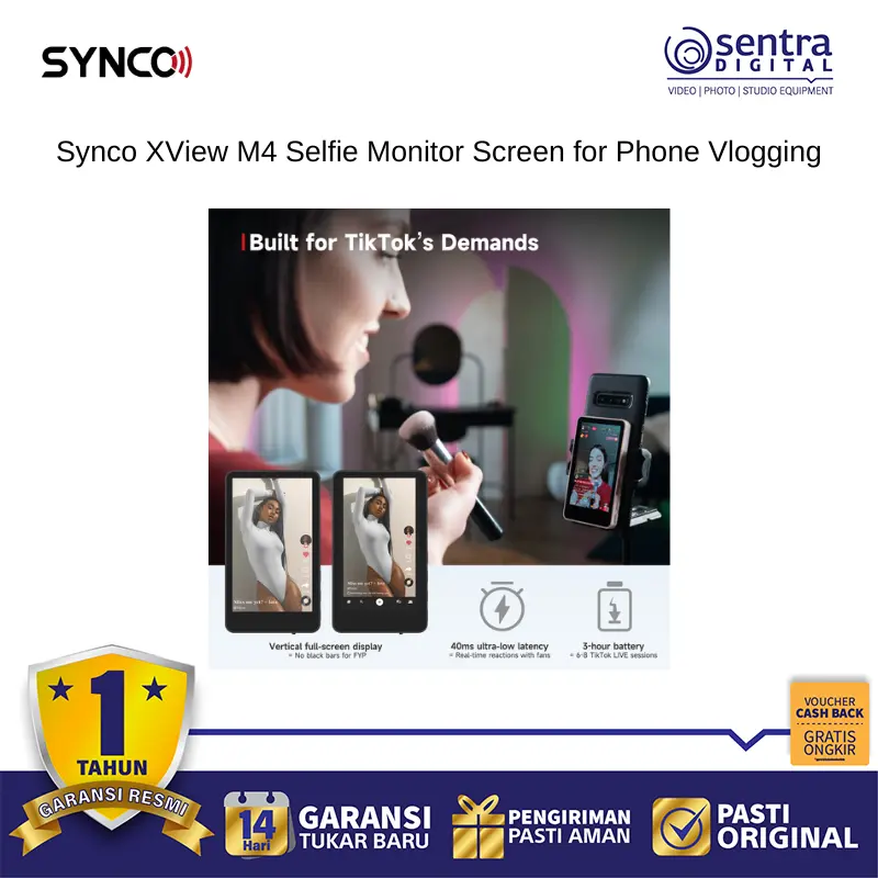 Layar Monitor Swafoto XView M4 dari Synco terhubung secara nirkabel ke hampir semua ponsel pintar untuk memudahkan pengambilan swafoto, vlog, atau streaming langsung menggunakan kamera belakang ponsel untuk kualitas gambar yang lebih tinggi. Teknologi koneksi langsung P2P yang canggih dapat terhubung dengan ponsel pintar Android atau iOS dalam hitungan detik, tanpa perlu terhubung melalui jaringan Wi-Fi eksternal. Gunakan rana nirkabel 32 kaki bawaan untuk memulai, menghentikan, dan mengontrol kamera ponsel Anda dari jarak jauh.