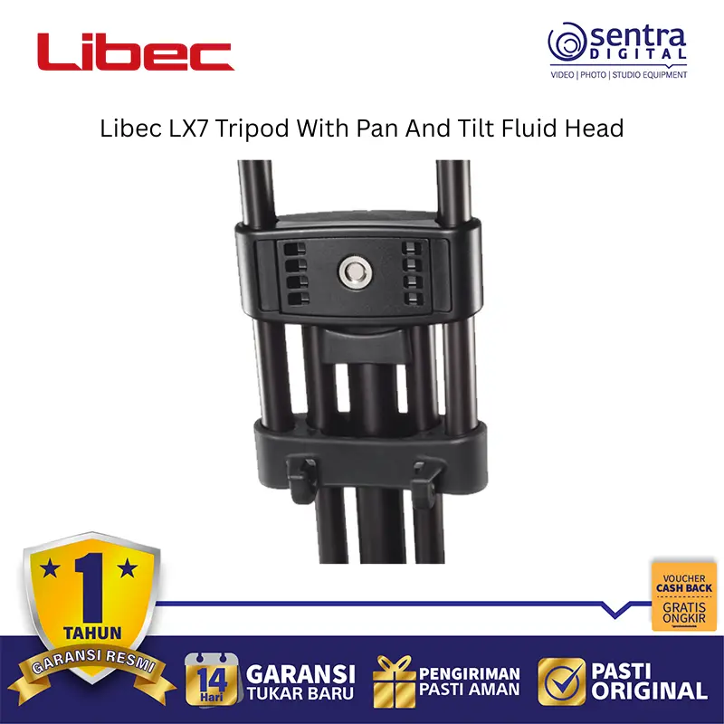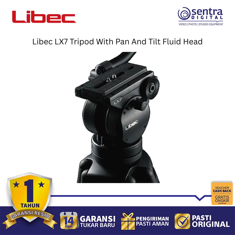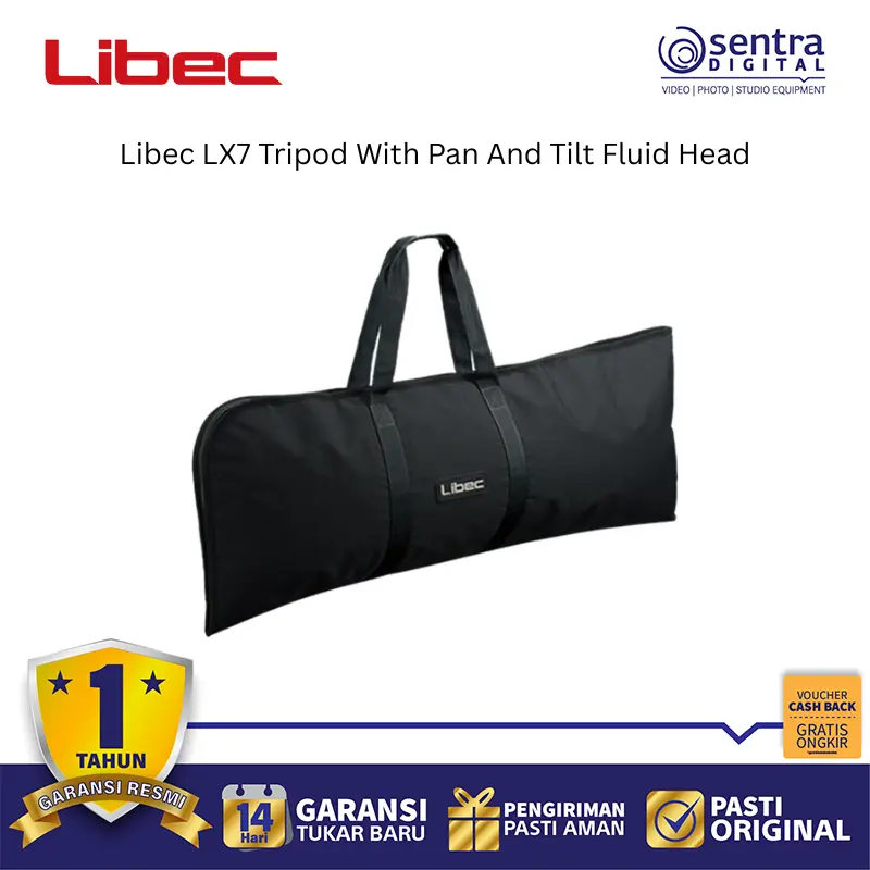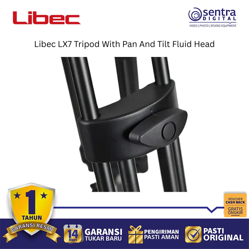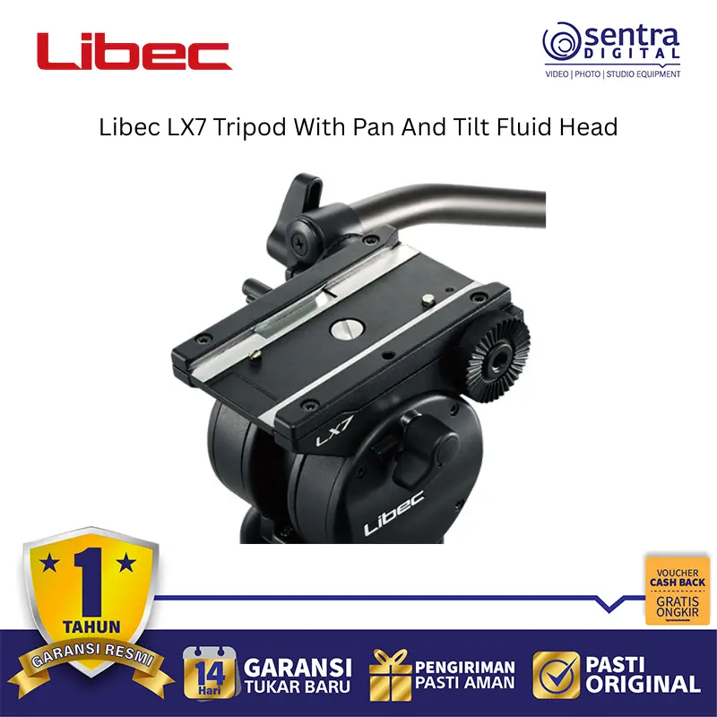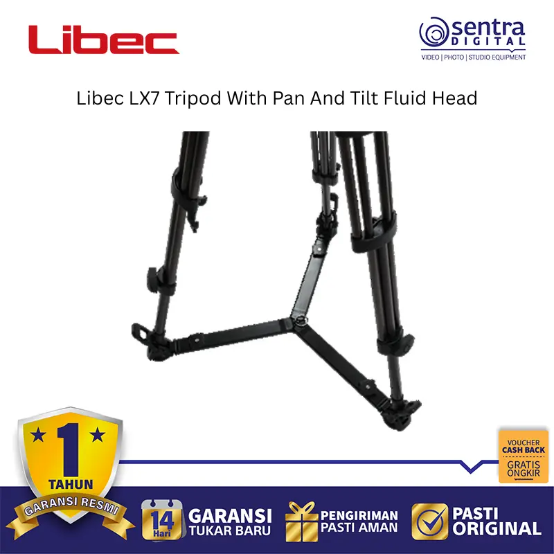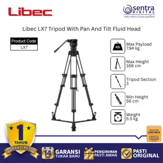 Libec LX7 Tripod System dengan Pan and Tilt Fluid Head adalah perangkat penyangga kamera profesional berbahan aluminium yang dirancang untuk kamera DV, HD, serta kamera semi-shoulder berukuran kecil hingga menengah. Sistem ini memiliki kapasitas beban hingga 8 kg dan dilengkapi dengan