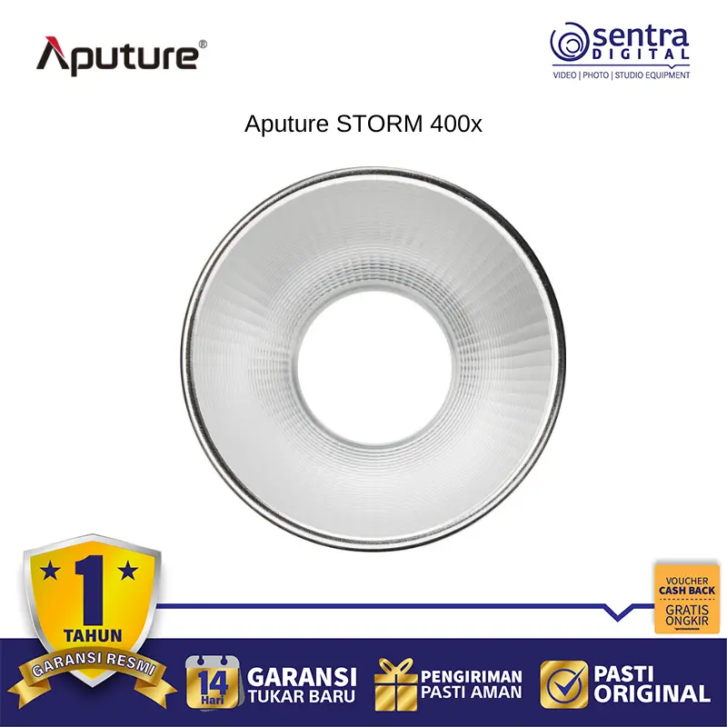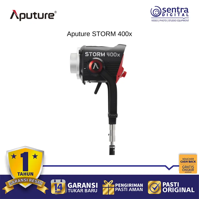Aputure STORM 400x adalah lampu LED point-source bi-color revolusioner yang menggunakan chipset BLAIR untuk menghasilkan spektrum cahaya penuh yang sangat akurat di seluruh rentang suhu warna 2500K hingga 10000K. Lampu ini menawarkan output yang sangat bertenaga dengan konsumsi daya 400W namun tetap mampu mempertahankan kualitas warna putih yang murni serta cakupan spektrum yang lebih luas dibandingkan lampu LED konvensional. Dirancang untuk ketahanan di lapangan, STORM 400x dilengkapi dengan perlindungan cuaca IP65 sehingga aman digunakan dalam kondisi hujan atau debu ekstrem. Selain kontrol presisi hingga 0,1 persen, lampu ini juga memiliki dudukan ProLock Bowens Mount yang lebih kokoh untuk pemasangan modifier besar serta mendukung berbagai protokol kontrol profesional seperti Sidus Link, CRMX, dan DMX.