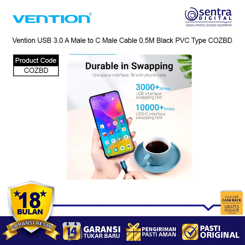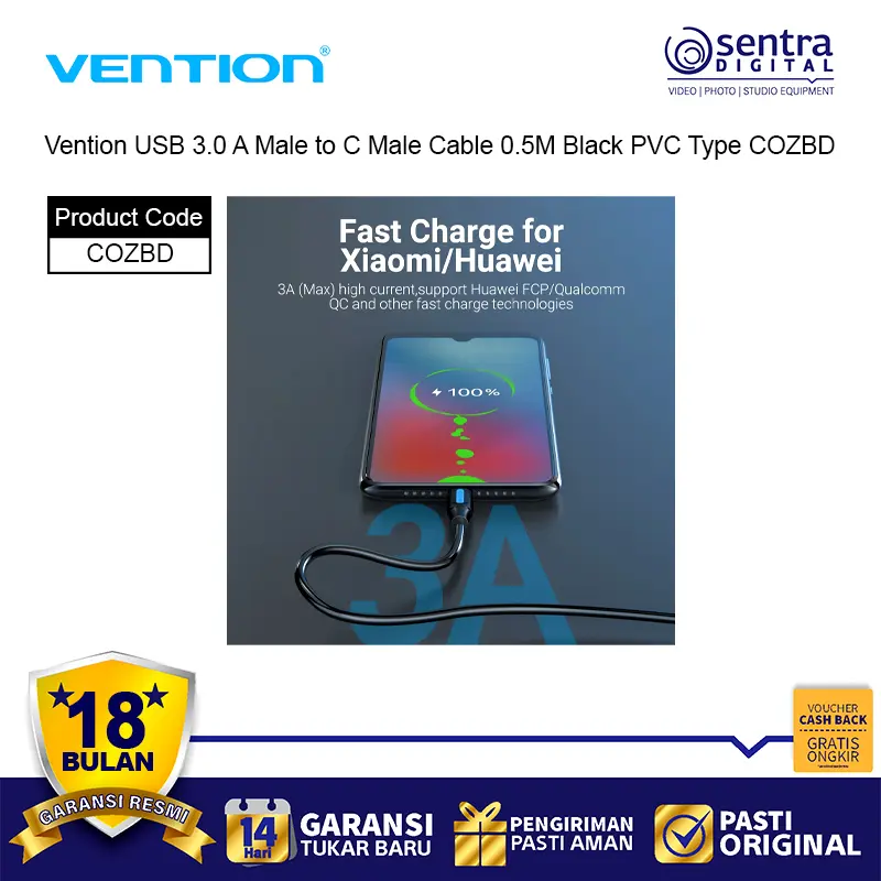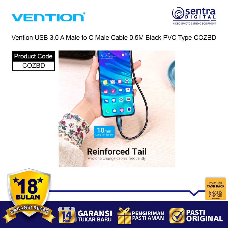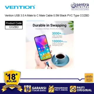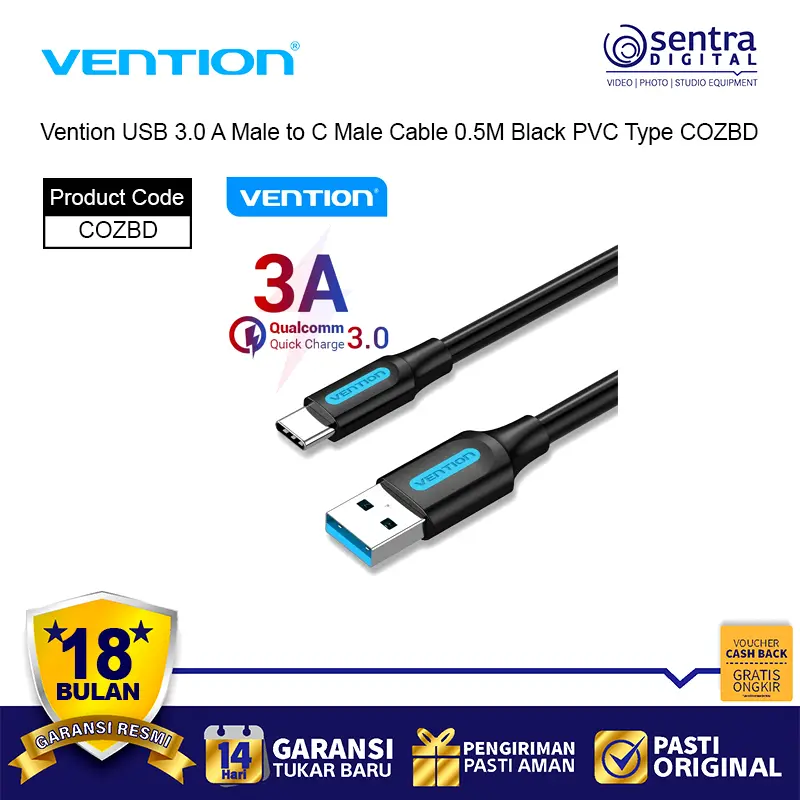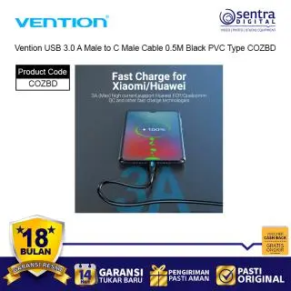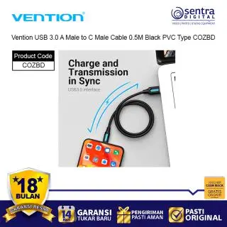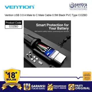 Vention USB 3.0 A Male to C Male Cable 0.5M Black PVC Type COZBD