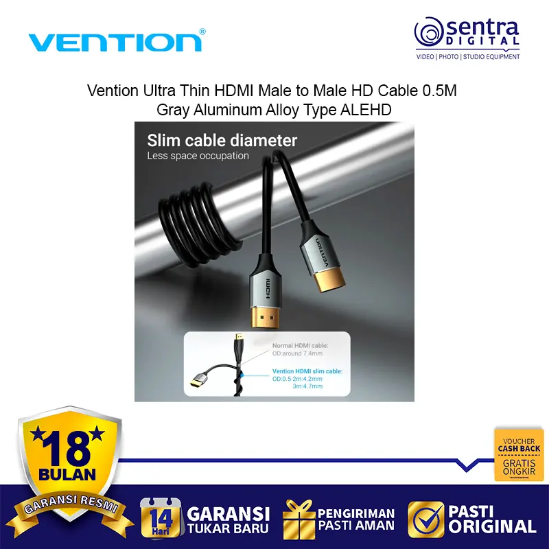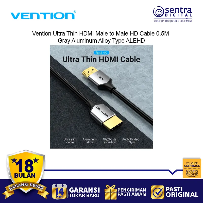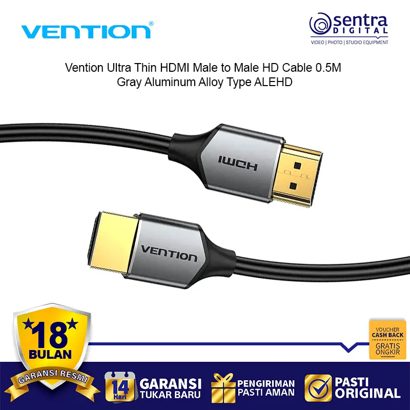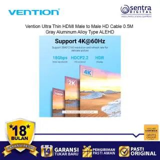 Vention Ultra Thin HDMI Male to Male HD Cable 0.5M adalah kabel HDMI premium dengan desain super tipis dan ringan. Terbuat dari bahan aluminium alloy abu-abu yang elegan, kabel ini mendukung resolusi Full HD hingga 1080p dengan transmisi sinyal stabil. Cocok digunakan untuk menghubungkan laptop, PC, TV, monitor, dan proyektor. Dengan panjang 0.5 meter, kabel ini ideal untuk setup rapi tanpa kabel berlebihan. Desain ultra tipis membuatnya fleksibel, mudah dibawa, dan tahan lama.