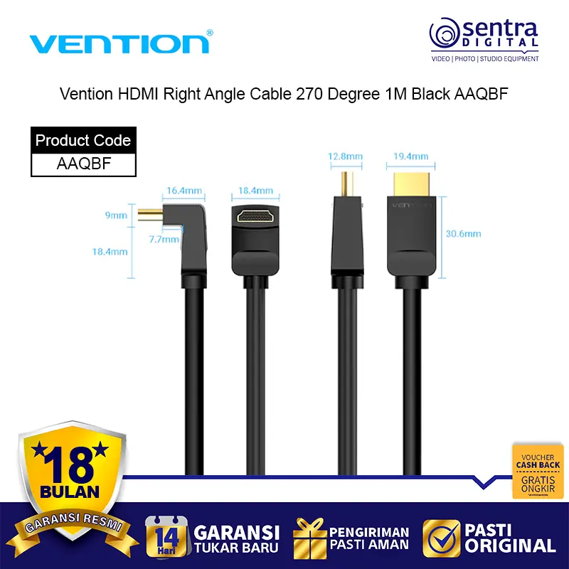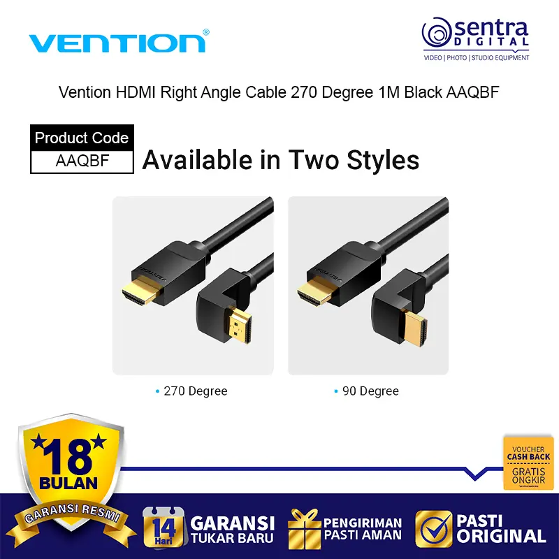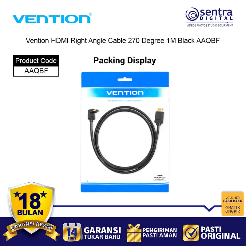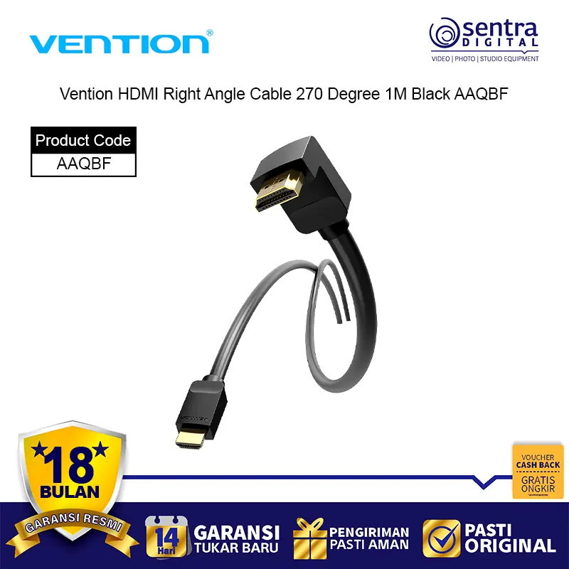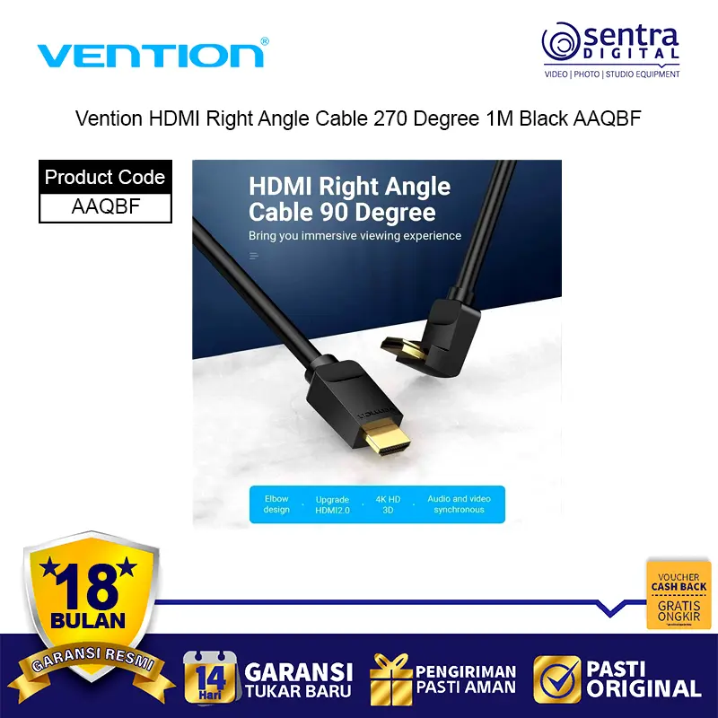 Vention HDMI Right Angle Cable 270° 1M adalah kabel HDMI berkualitas tinggi dengan desain sudut 270 derajat yang memudahkan instalasi di ruang sempit. Kabel ini mendukung resolusi hingga 4K Ultra HD, memberikan kualitas gambar tajam dan stabil. Dengan panjang 1 meter, kabel ini ideal untuk menghubungkan perangkat seperti TV, monitor, laptop, PC, dan proyektor tanpa kabel berlebihan. Terbuat dari bahan PVC hitam yang kuat dan fleksibel, kabel ini tahan lama dan praktis digunakan untuk home theater maupun setup gaming.