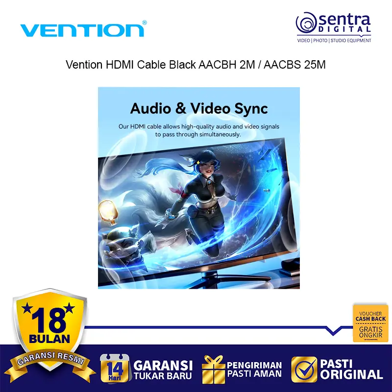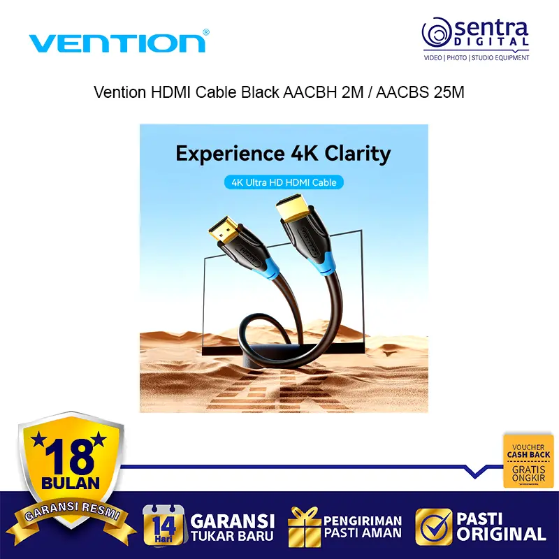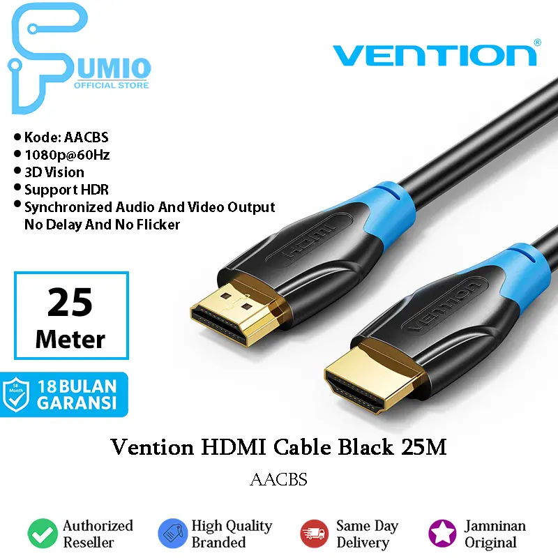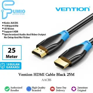 Vention HDMI Cable 25M Black Type AACBS adalah kabel HDMI profesional dengan panjang ekstra 25 meter, dirancang untuk kebutuhan instalasi jarak jauh seperti home theater, ruang konferensi, dan sistem audio visual. Kabel ini mendukung resolusi hingga 4K Ultra HD dengan transmisi sinyal digital yang stabil, menghasilkan gambar tajam dan suara jernih tanpa gangguan. Terbuat dari material PVC hitam yang kuat dan fleksibel, kabel ini ideal untuk menghubungkan perangkat seperti TV, monitor, laptop, PC, dan proyektor.