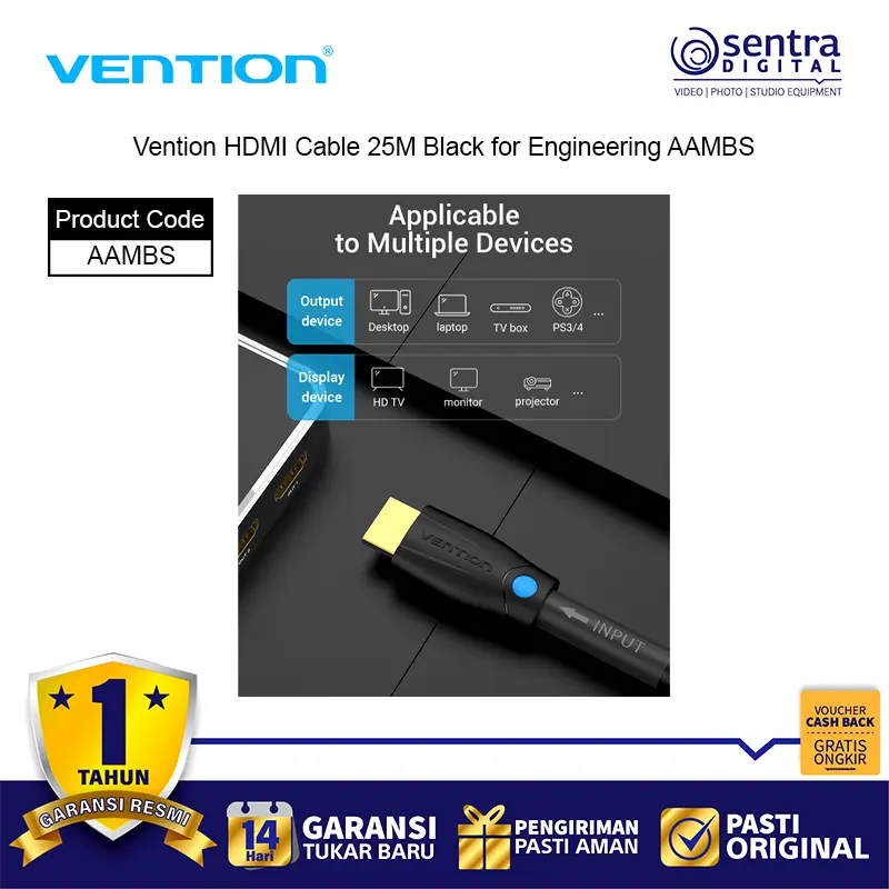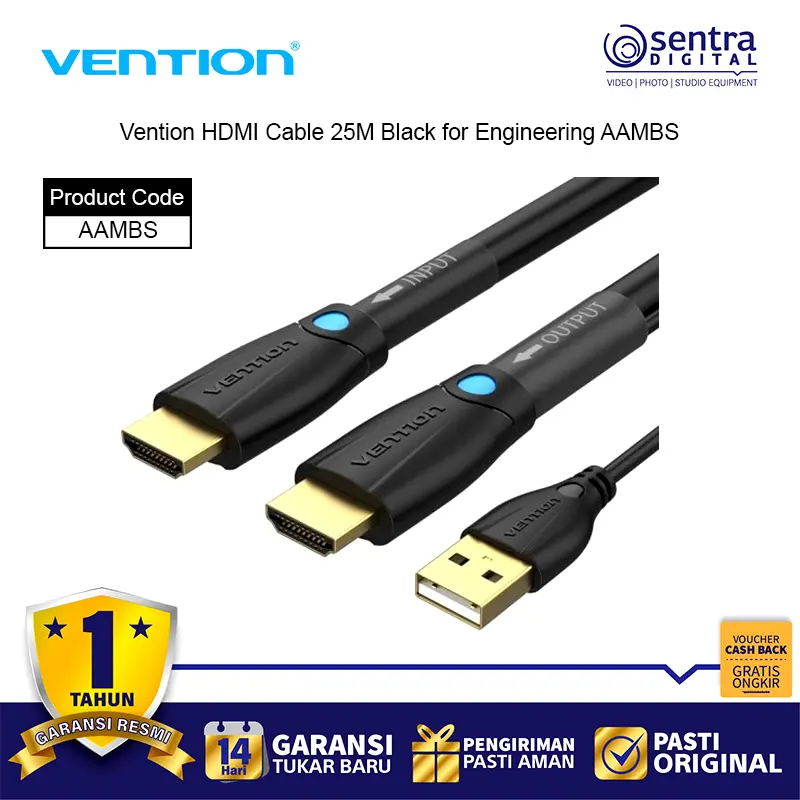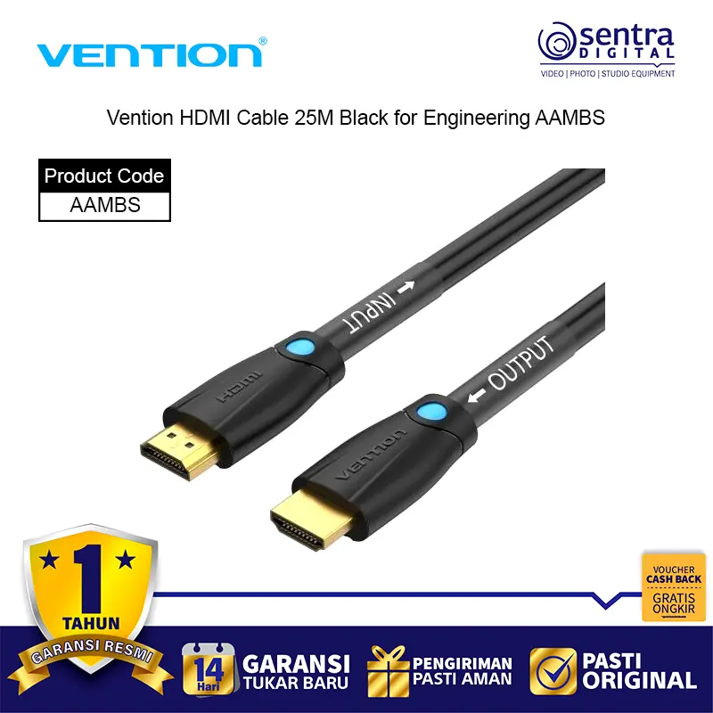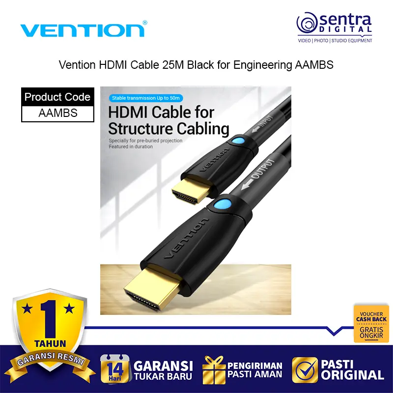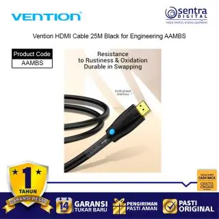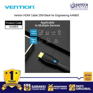 Vention HDMI Cable 25M Black for Engineering AAMBS adalah kabel HDMI profesional dengan panjang ekstra 25 meter, dirancang khusus untuk kebutuhan instalasi teknik, konferensi, dan sistem audio visual berskala besar. Kabel ini mendukung resolusi hingga 4K Ultra HD dengan transmisi sinyal digital yang stabil, menghasilkan gambar tajam dan suara jernih meski digunakan pada jarak jauh. Terbuat dari material PVC hitam yang kuat dan fleksibel, kabel ini ideal untuk proyektor, layar besar, TV, dan perangkat presentasi.