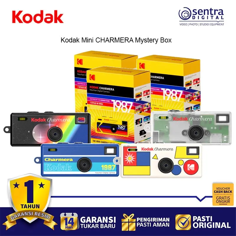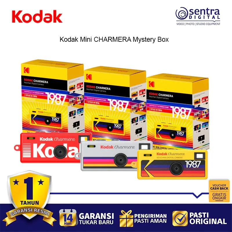 Kodak Mini Charmera Single Blind Box adalah kamera digital mungil seukuran gantungan kunci yang dikemas dalam konsep kotak kejutan, di mana pembeli akan mendapatkan salah satu dari tujuh variasi desain retro secara acak. Terinspirasi dari kamera sekali pakai Kodak Fling tahun 1987, perangkat ini memiliki bobot hanya 30 gram dan dimensi yang sangat ringkas sehingga mudah dikaitkan pada tas atau kunci. Meski ukurannya sangat kecil, kamera ini berfungsi sepenuhnya dengan sensor 1,6MP yang mampu mengambil foto serta merekam video beresolusi 1440 x 1080 piksel ke dalam kartu microSD. Charmera menawarkan pengalaman fotografi lo-fi yang unik melalui fitur empat bingkai digital dan tujuh filter warna retro, termasuk stempel tanggal klasik untuk memperkuat nuansa nostalgia. Setiap unit dilengkapi dengan baterai internal yang dapat diisi ulang melalui port USB-C, menjadikannya perpaduan antara aksesori mode yang estetis dan alat dokumentasi instan yang praktis bagi para kolektor.
