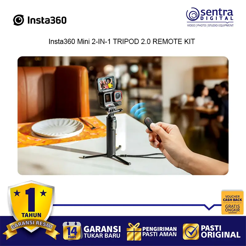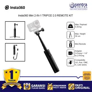 The Insta360 Mini 2-IN-1 Tripod 2.0 Remote Kit is a compact, multifunctional accessory designed for Insta360 cameras, combining a sturdy mini tripod with a 58.5 cm selfie stick and remote control compatibility. It’s optimized for portability, ease of use, and cross-device compatibility, making it ideal for creators who need flexibility in shooting setups.
