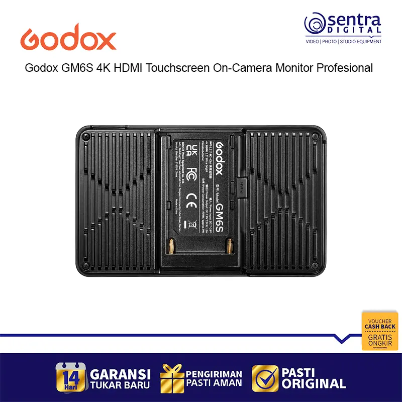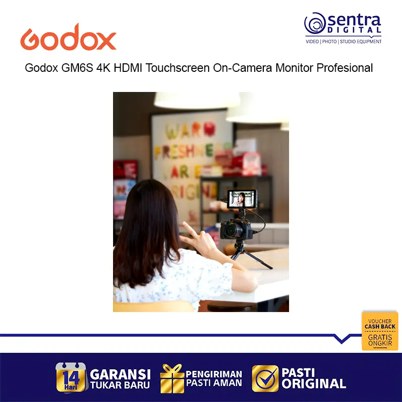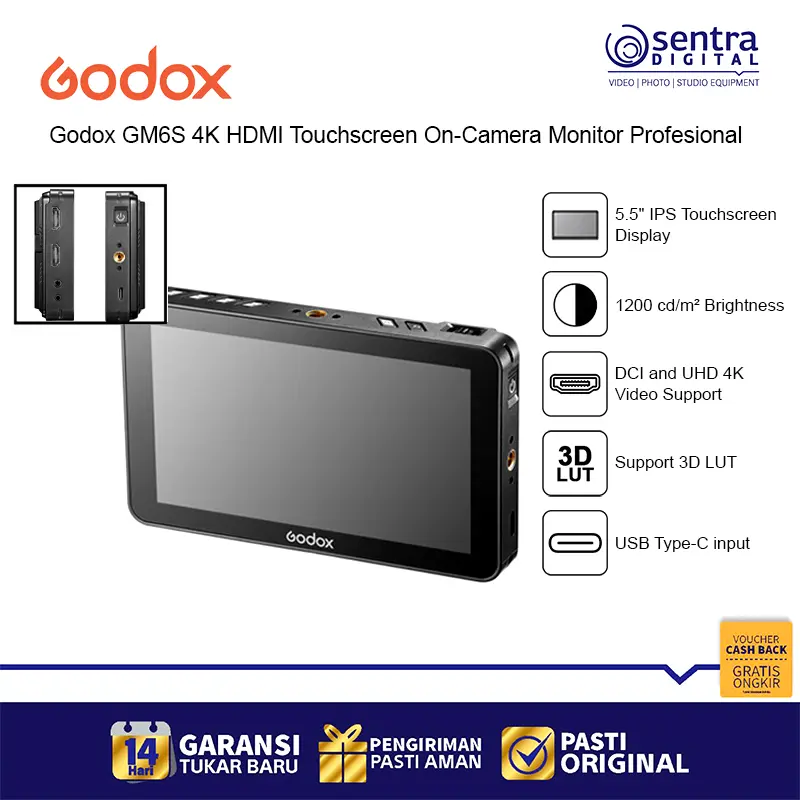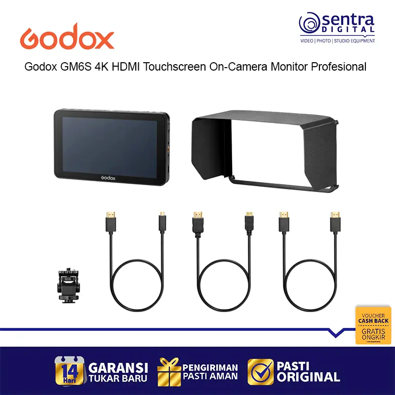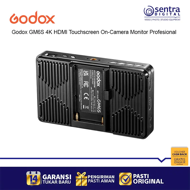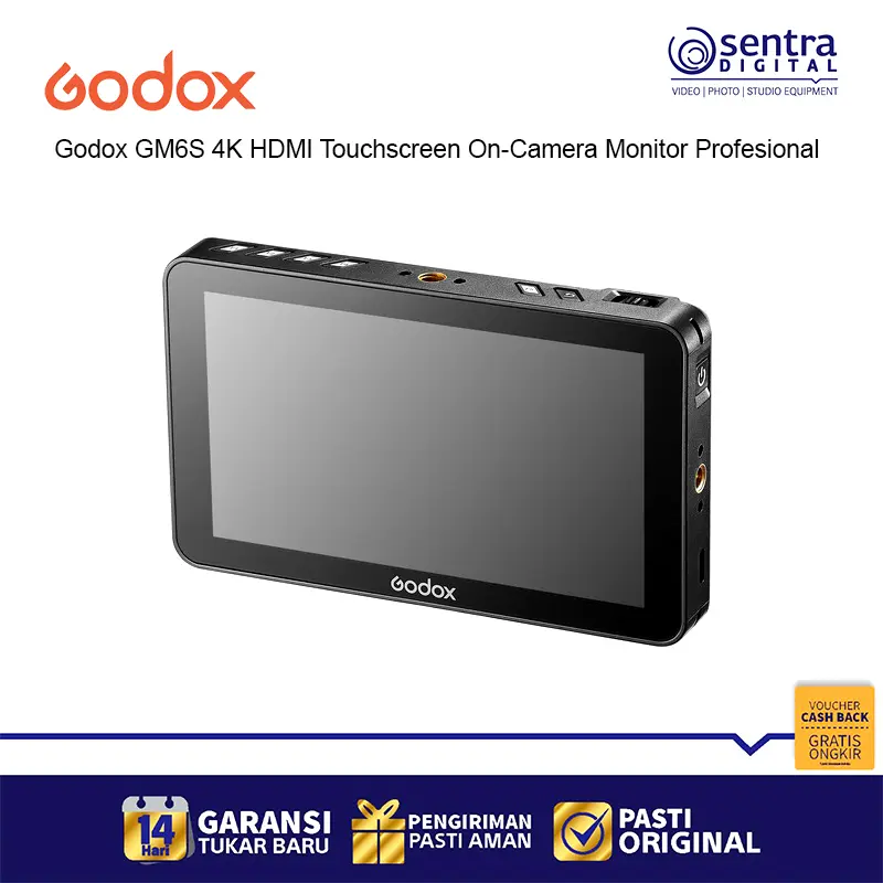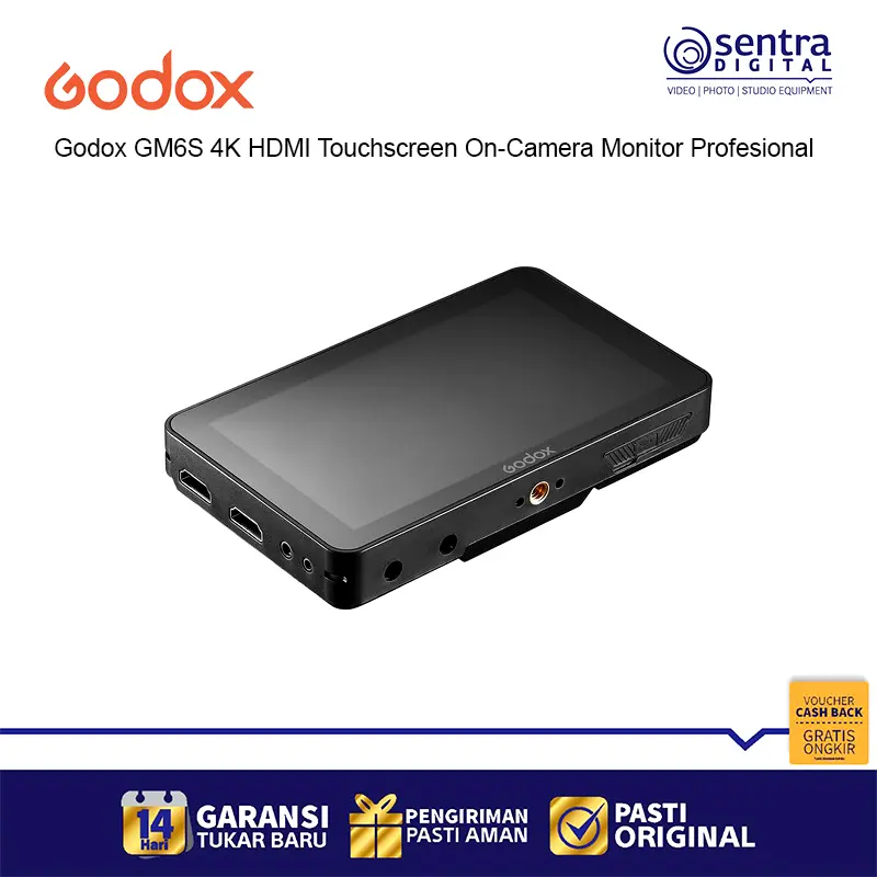 Godox Monitor GM6S 4K HDMI Touchscreen On-Camera Monitor – Monitor kamera profesional 5.5 inci dengan resolusi 4K HDMI, layar sentuh IPS, dukungan LUT 3D, dan fitur HDR, ideal untuk videografer dan fotografer yang membutuhkan monitoring presisi saat produksi.