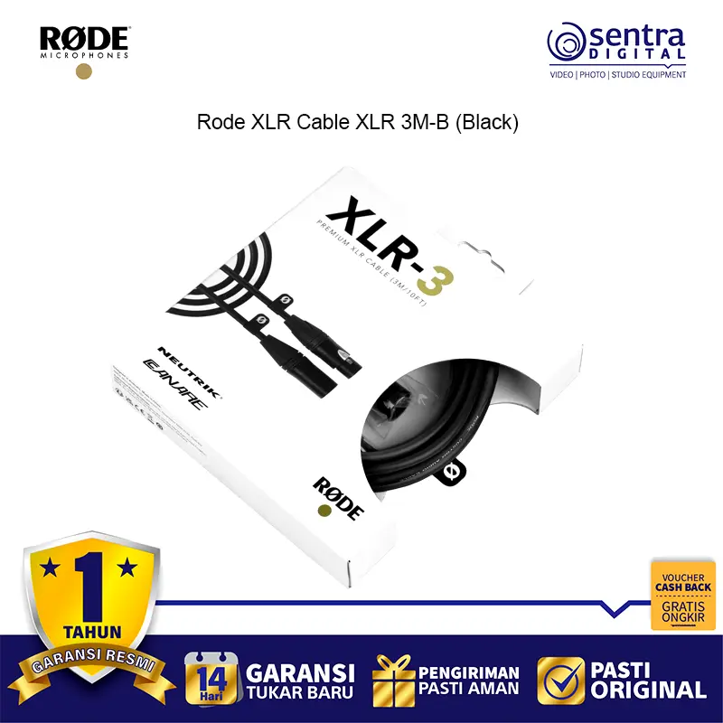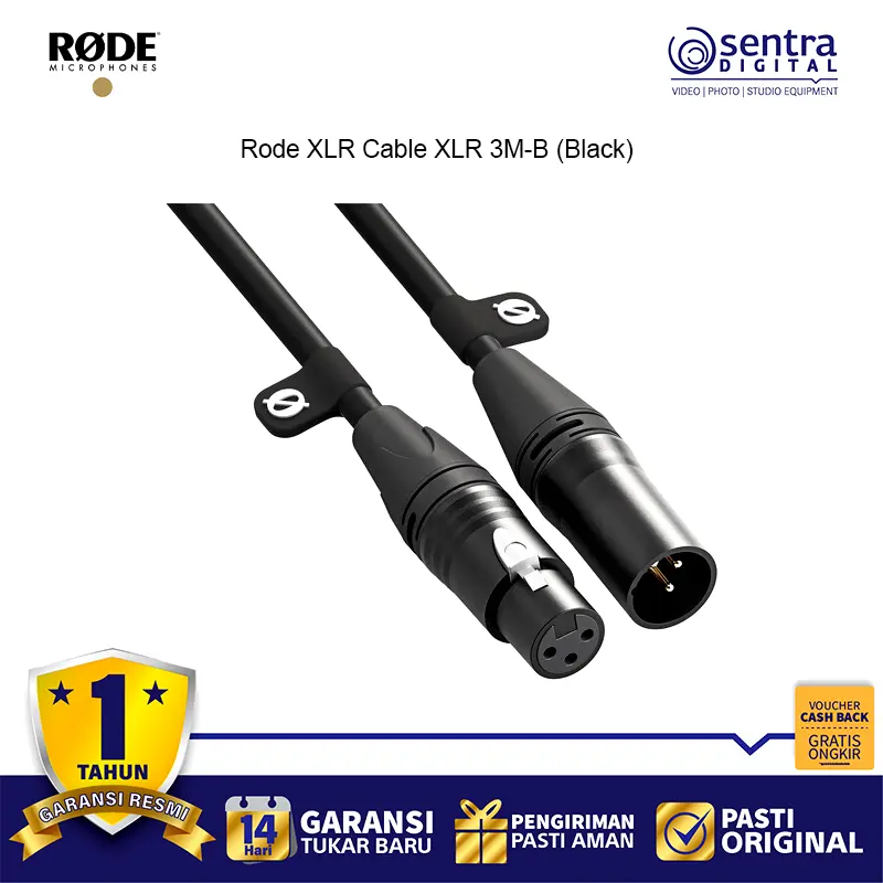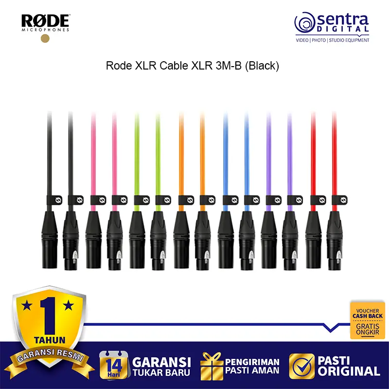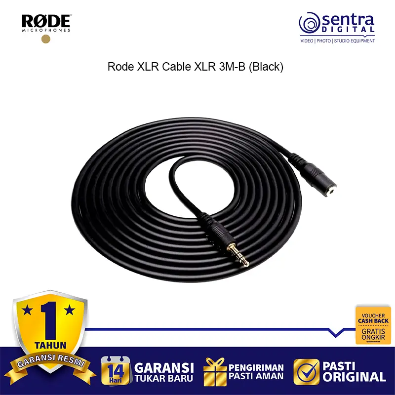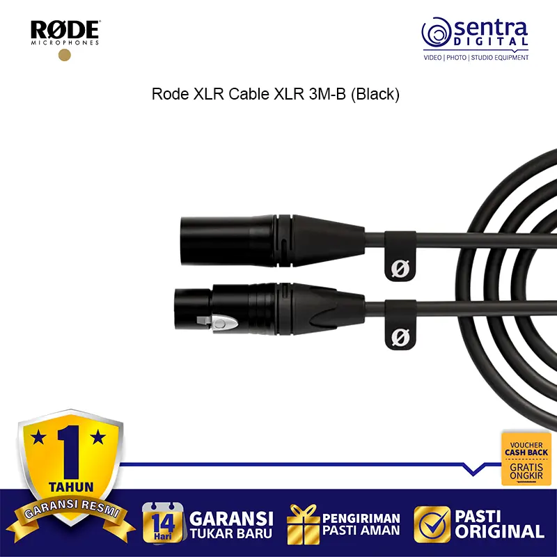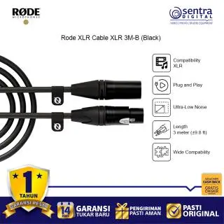 Rode XLR Cable XLR 3M-B (Black) – Kabel mikrofon profesional sepanjang 3 meter dengan konektor XLR berkualitas tinggi, desain warna hitam elegan, ideal untuk studio rekaman, podcast, live performance, dan produksi audio dengan transmisi sinyal jernih dan minim noise.