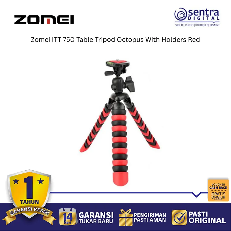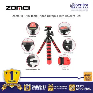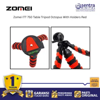 Zomei ITT 750 Table Tripod Octopus With Holders Black/Red – Mini tripod fleksibel dengan desain octopus, kaki elastis anti-selip, dilengkapi phone holder, ringan dan portabel, ideal untuk fotografi, vlogging, live streaming, serta penggunaan sehari-hari dengan stabilitas maksimal.
