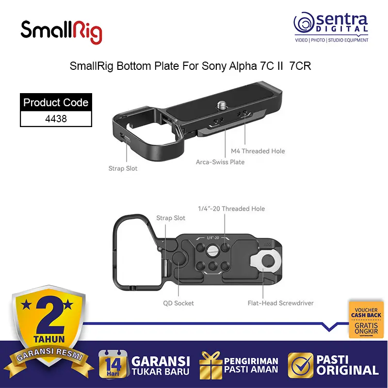 SmallRig Bottom Plate 4438 dirancang khusus untuk Sony Alpha 7C II dan 7CR, memberikan stabilitas ekstra saat kamera dipasang di tripod atau gimbal. Terbuat dari aluminium alloy berkualitas tinggi, ringan namun kokoh, dengan Arca-Swiss quick release dan magnetic wrench bawaan untuk pemasangan cepat. Desain ergonomis memastikan akses mudah ke baterai tanpa perlu melepas plate.
