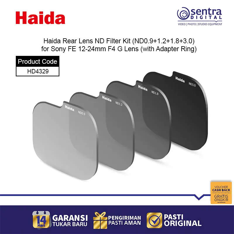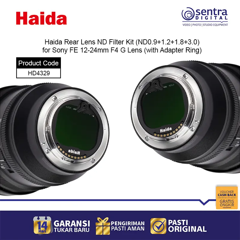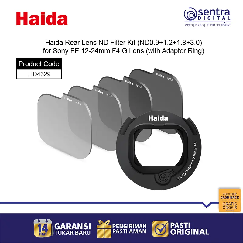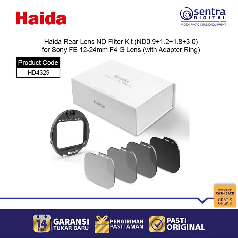 Haida Rear Lens ND Filter Kit HD4329 dirancang khusus untuk lensa Sony FE 12-24mm F4 G, menghadirkan solusi praktis bagi fotografer landscape dan long exposure yang membutuhkan kontrol cahaya maksimal tanpa harus menggunakan filter depan yang besar dan mahal. Paket ini terdiri dari empat filter ND (ND0.9, ND1.2, ND1.8, ND3.0) yang memberikan reduksi cahaya mulai dari 3 hingga 10 stop, sehingga memungkinkan penggunaan shutter speed lambat atau aperture lebar untuk efek kreatif seperti motion blur pada air terjun atau langit dramatis. Filter ini terbuat dari HD optical glass dengan multi-layer nano coating yang tahan air dan minyak, serta menjaga kejernihan gambar dengan true color performance tanpa color cast. Desain rear-mounted dengan adapter ring membuat pemasangan lebih ringkas dan bebas vignette, sekaligus mengurangi pantulan berlebih. Kombinasi kata kunci seperti Haida ND filter kit, rear lens ND filter, Sony FE 12-24mm F4 G, HD optical glass, multi-coated ND filter, true color, dan long exposure photography menjadikan produk ini sangat relevan untuk fotografer profesional maupun hobi yang mencari kualitas optik terbaik dengan sistem filter yang ringan dan praktis.
