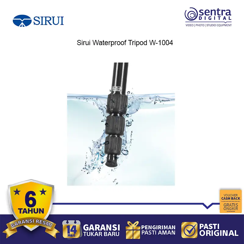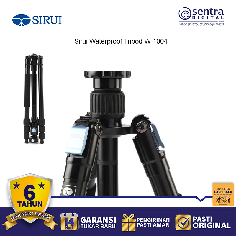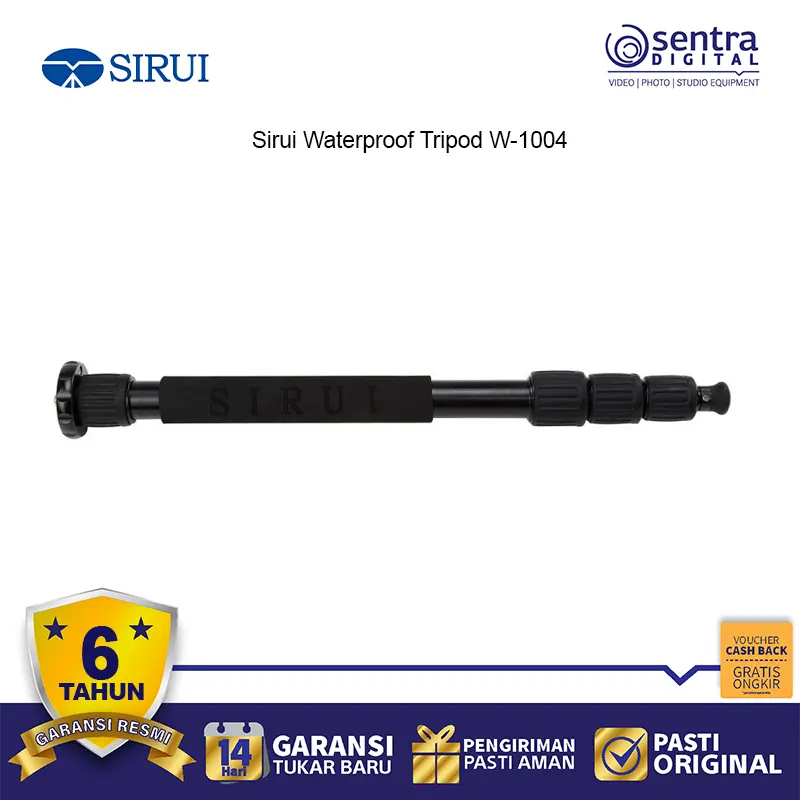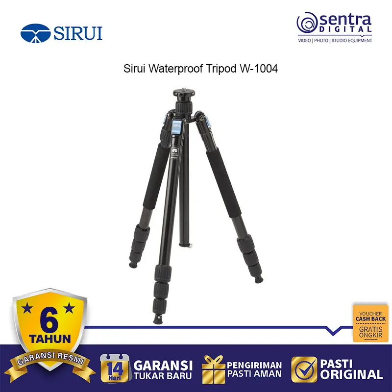 Sirui W-1004 Tripod Karbon Fiber Tahan Air dirancang untuk fotografer petualang. Dengan kaki tripod yang tertutup rapat, tripod ini tahan terhadap air, debu, dan pasir. Material karbon fiber membuatnya ringan namun tetap stabil. Dilengkapi kolom tengah yang bisa dibalik dan monopod lepas-pasang, sangat cocok untuk fotografi perjalanan, lanskap, dan outdoor.