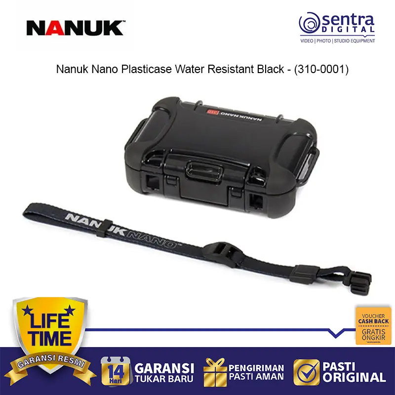 Nanuk Nano Plasticase Water Resistant Black (310-0001) adalah kotak pelindung ringkas dengan material polycarbonate kuat dan hardware baja tahan karat. Dilengkapi sistem pengunci PowerClaw™ yang aman serta warna hitam elegan untuk tampilan profesional. Memberikan perlindungan maksimal terhadap air, debu, dan benturan, cocok untuk perjalanan, aktivitas outdoor, maupun penggunaan sehari-hari.