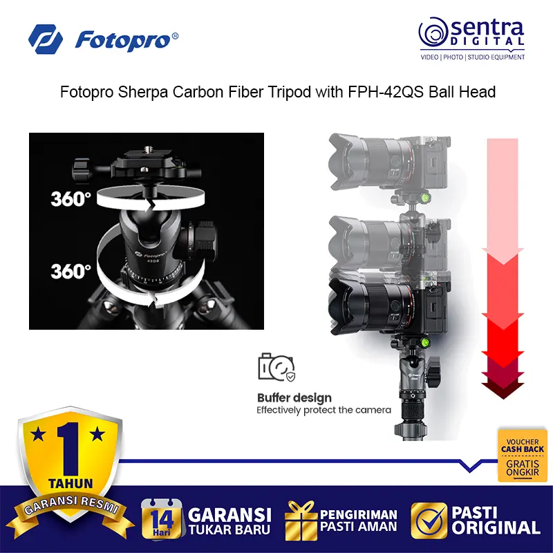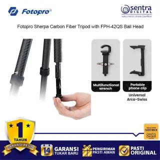 Tripod Perjalanan Serat Karbon Fotopro Sherpa dengan Kepala Bola Tipe Arca FPH-42QS adalah tripod yang sangat serbaguna dan ringan yang dirancang untuk fotografer yang sedang bepergian. Dibuat dari serat karbon yang tahan lama, tripod ini menawarkan kapasitas beban yang mengesankan sebesar 17,6 pon, sehingga cocok untuk berbagai pengaturan kamera. Meskipun bentuknya kokoh, tripod ini ringan dan dapat dilipat menjadi ukuran yang ringkas, cocok untuk bepergian. Dengan tinggi maksimum 59,6 inci, tripod ini menyediakan jangkauan yang luas, sementara kolom tengah dapat dilepas untuk memungkinkan pemotretan sudut rendah, dengan tinggi minimum hanya 14,4 inci.