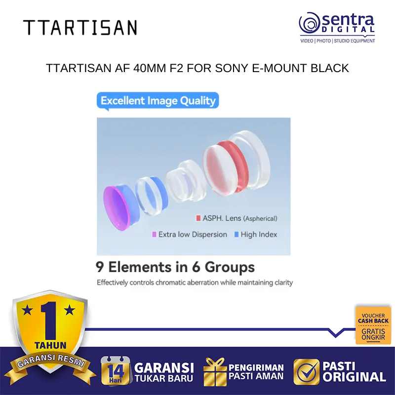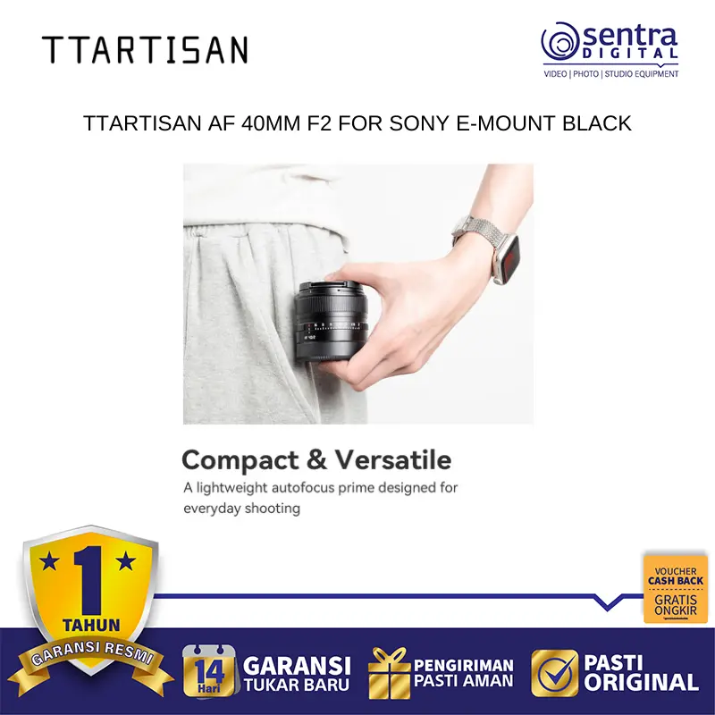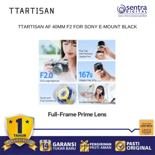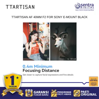 TTArtisan AF 40mm F2 untuk Sony E-Mount adalah lensa prime ringkas bergaya pancake yang menawarkan keseimbangan sempurna antara portabilitas dan performa optik untuk kamera mirrorless full-frame maupun APS-C. Dengan focal length 40mm yang unik, lensa ini memberikan sudut pandang natural yang mendekati penglihatan manusia, sehingga sangat serbaguna untuk fotografi jalanan, dokumenter, hingga potret sehari-hari. Lensa ini dilengkapi dengan motor stepper STM yang memastikan kinerja autofokus berjalan cepat, akurat, dan senyap, serta mendukung fitur pelacakan mata pada kamera Sony. Memiliki aperture maksimal F2 yang cerah, lensa ini mampu menghasilkan bokeh yang lembut dan performa yang solid dalam kondisi cahaya rendah, sementara bodinya yang berbahan logam tetap menjaga bobotnya sangat ringan untuk dibawa bepergian sepanjang hari.