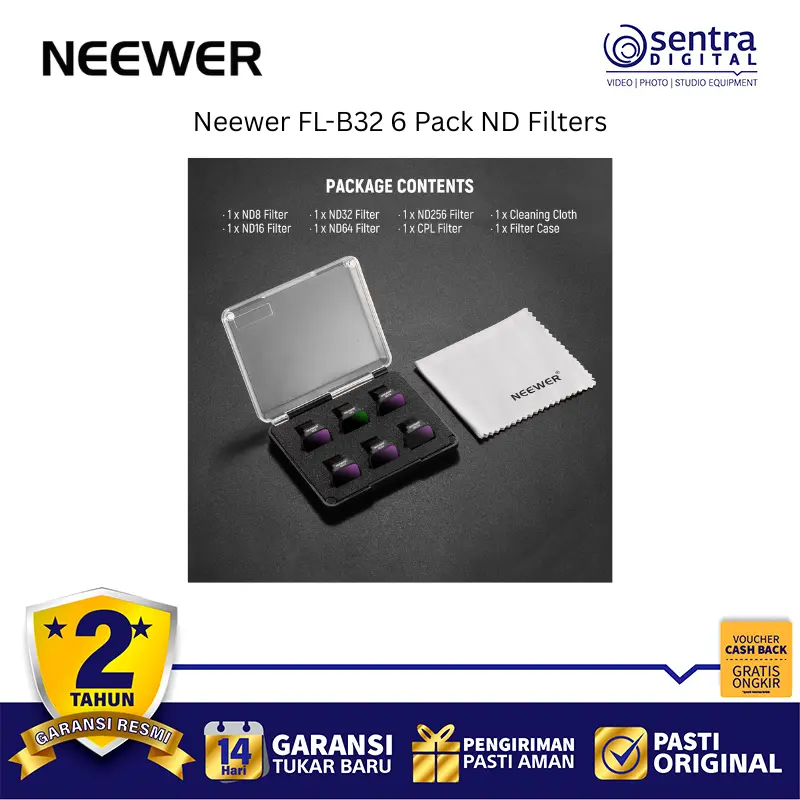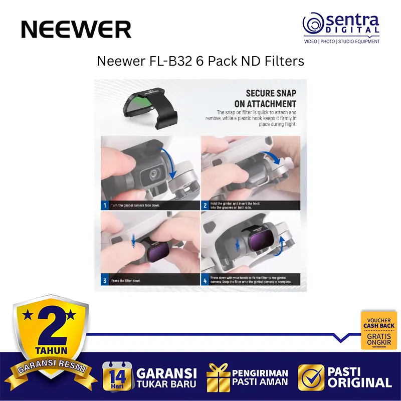 Neewer FL-B32 adalah paket filter ND yang terdiri dari enam varian densitas berbeda untuk mengontrol masuknya cahaya secara presisi pada lensa drone DJI Mini 4 Pro, 3 Pro, 2 SE, dan seri Mavic Mini. Terbuat dari kaca optik berkualitas tinggi dengan lapisan multi-layer, filter ini efektif mengurangi silau dan meningkatkan saturasi warna tanpa mengubah keseimbangan warna alami gambar. Desain bingkai aluminium yang sangat ringan memastikan penggunaan filter tidak memengaruhi kalibrasi gimbal atau performa terbang drone secara keseluruhan. Dengan pilihan mulai dari ND4 hingga ND1000, kit ini memungkinkan pilot drone untuk menangkap video dengan motion blur yang sinematik serta foto eksposur panjang yang jernih bahkan dalam kondisi cahaya matahari yang sangat terik.