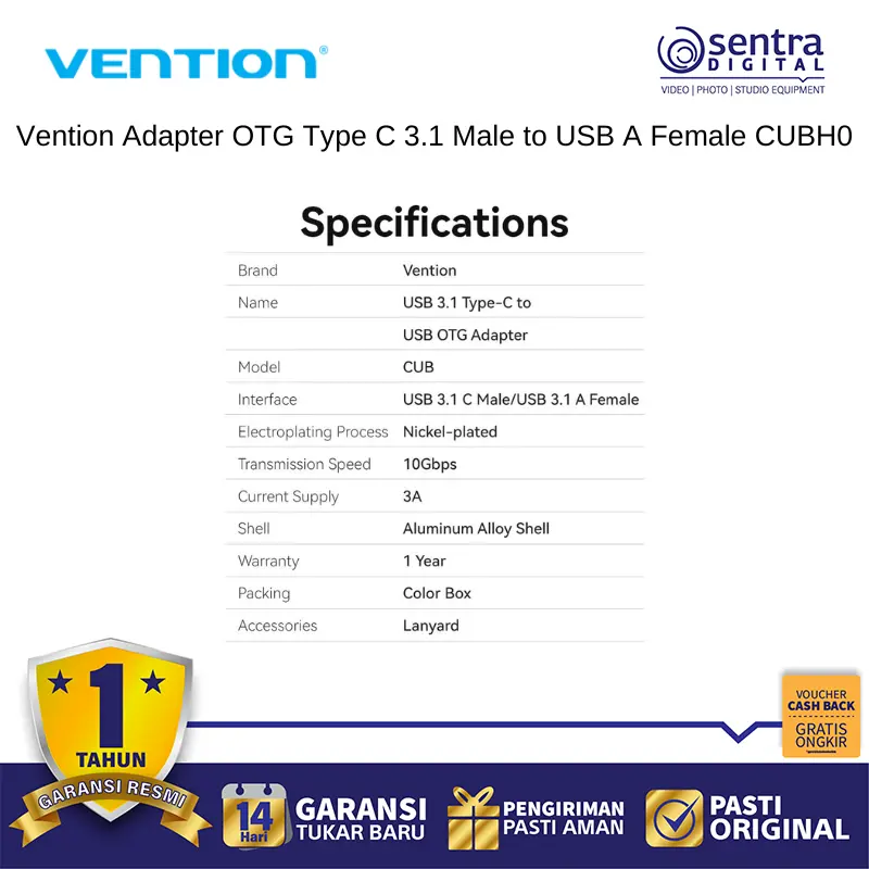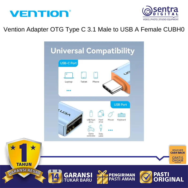 Vention Adapter OTG Type C 3.1 Male to USB A Female dengan kode produk CUBH0 adalah solusi konektivitas ultra-ringkas yang memungkinkan perangkat dengan port USB-C seperti ponsel pintar, tablet, atau laptop untuk terhubung secara instan ke berbagai aksesori USB standar. Mengusung teknologi USB 3.1 Gen 1, adaptor ini mendukung kecepatan transfer data super cepat hingga 5Gbps yang memungkinkan pemindahan file besar dalam hitungan detik serta mendukung fungsi plug-and-play tanpa memerlukan instalasi driver tambahan. Bodinya yang mungil dan elegan dirancang dengan material berkualitas tinggi untuk memastikan daya tahan jangka panjang sekaligus memudahkan pengguna untuk membawanya di dalam saku atau tas kecil. Alat ini sangat berguna untuk menghubungkan flashdisk, tetikus, papan ketik, hingga pengontrol game ke perangkat modern yang hanya memiliki port tipe C, menjadikannya jembatan multifungsi untuk produktivitas harian Anda.