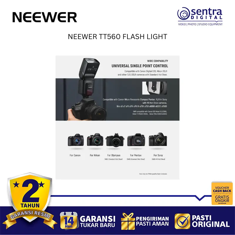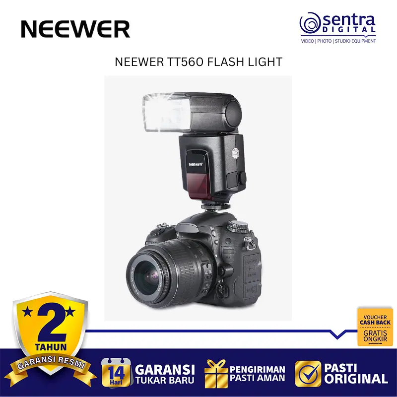 Neewer TT560 Camera Flash Speedlite adalah lampu kilat eksternal manual yang sangat populer karena kemudahan penggunaan dan kompatibilitas universalnya dengan hampir semua kamera yang memiliki