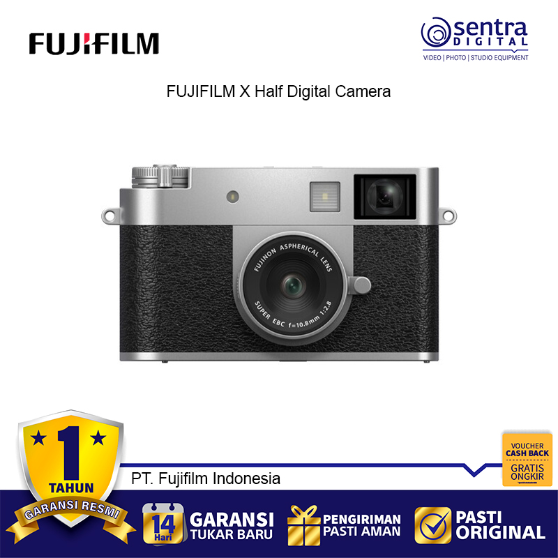 Menciptakan kembali ide kamera film setengah bingkai dalam bentuk digital, FUJIFILM X half merupakan kamera point-and-shoot yang ramping dan portabel dengan desain sensor vertikal 1";; yang unik, lensa prima sudut lebar tetap, dan beberapa fungsi pengambilan gambar yang mengingatkan pada film yang dimaksudkan untuk meniru kenikmatan dan ketegasan dalam pengambilan gambar film.