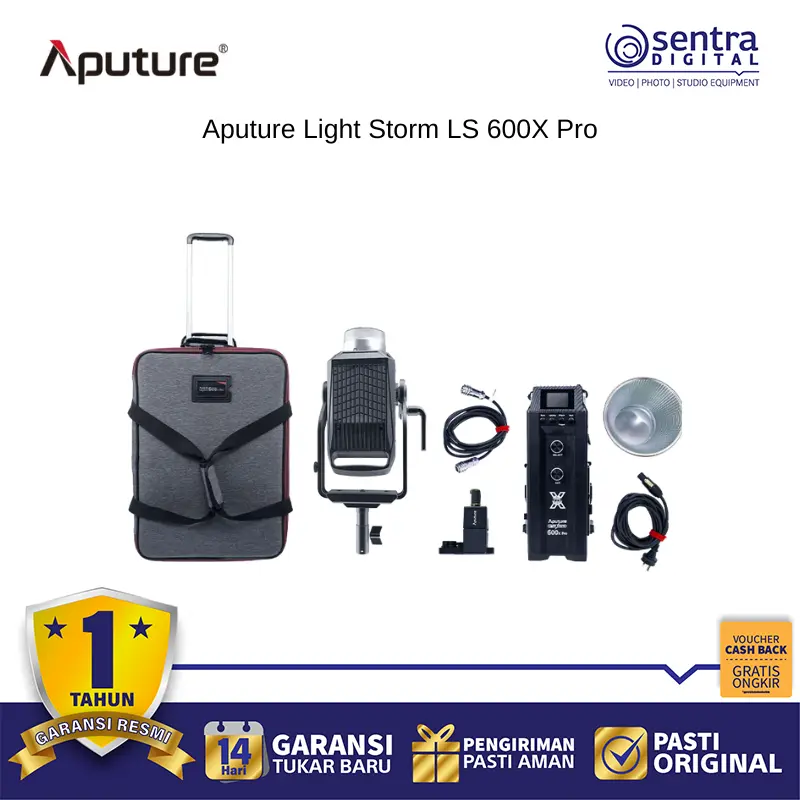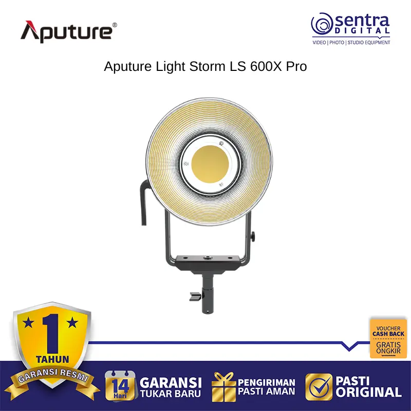 Aputure  LS 600x Pro Bi-Color LED Monolight adalah perlengkapan LED yang kuat dengan pilihan warna dan daya, serta output tinggi yang ditambah dengan Hyper Reflector 55° yang disertakan atau attachment Fresnel opsional. Perlengkapan presisi ini memiliki rentang suhu warna variabel yang luas dari 2700 hingga 6500K dengan peringkat CRI/TLCI tinggi 96 dan 98 - jaminan Anda akan reproduksi warna yang presisi. Selain daya, kontrol adalah kekuatan pendorong dalam desain 600x Pro. Penyesuaian dapat dilakukan secara lokal pada perlengkapan atau secara nirkabel dari jarak jauh melalui remote nirkabel 2,4 GHz yang disertakan, aplikasi seluler Sidus Link, dan kontrol DMX nirkabel bawaan - berguna saat lampu Anda dipasang di atas kepala atau di tempat yang sulit dijangkau. LS 600x Pro juga memiliki empat kurva peredupan: Linear, Eksponensial, Log, dan S-Curve, untuk memastikan akurasi terlepas dari tingkat kecerahan yang Anda pilih.